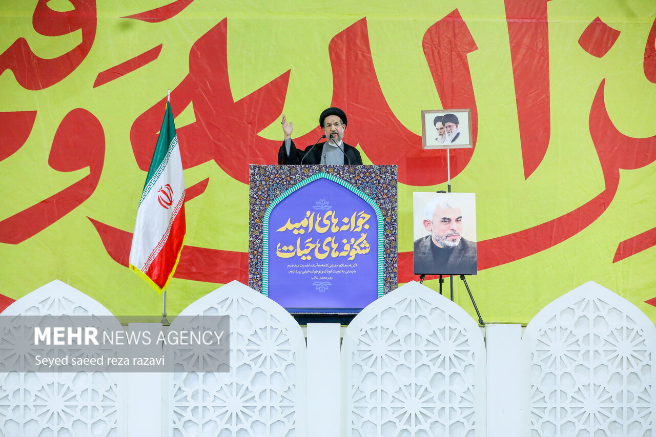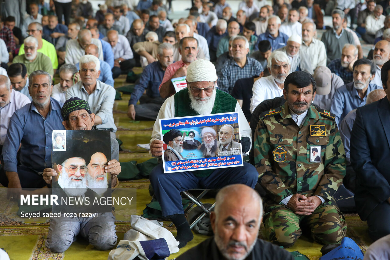نماز عبادی-سیاسی جمعه تهران امروز جمعه ۲۵ مهر ماه ۱۴۰۴ به امامت حجتالاسلام محمدحسن ابوترابیفرد امام جمعه موقت تهران در دانشگاه تهران برگزار شد. پس از اقامه نماز جمعه پیکر سردار علیرضا افشار از فرماندهان و پیشکسوتان دفاع مقدس و فرمانده اسبق سازمان بسیج مستضعفین بر روی دستان نمازگزاران تشییع شد.