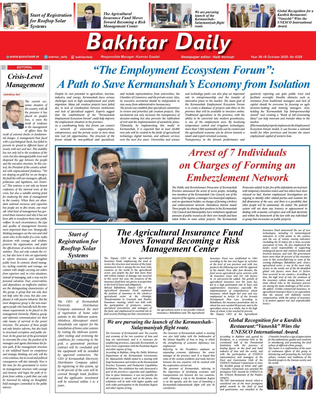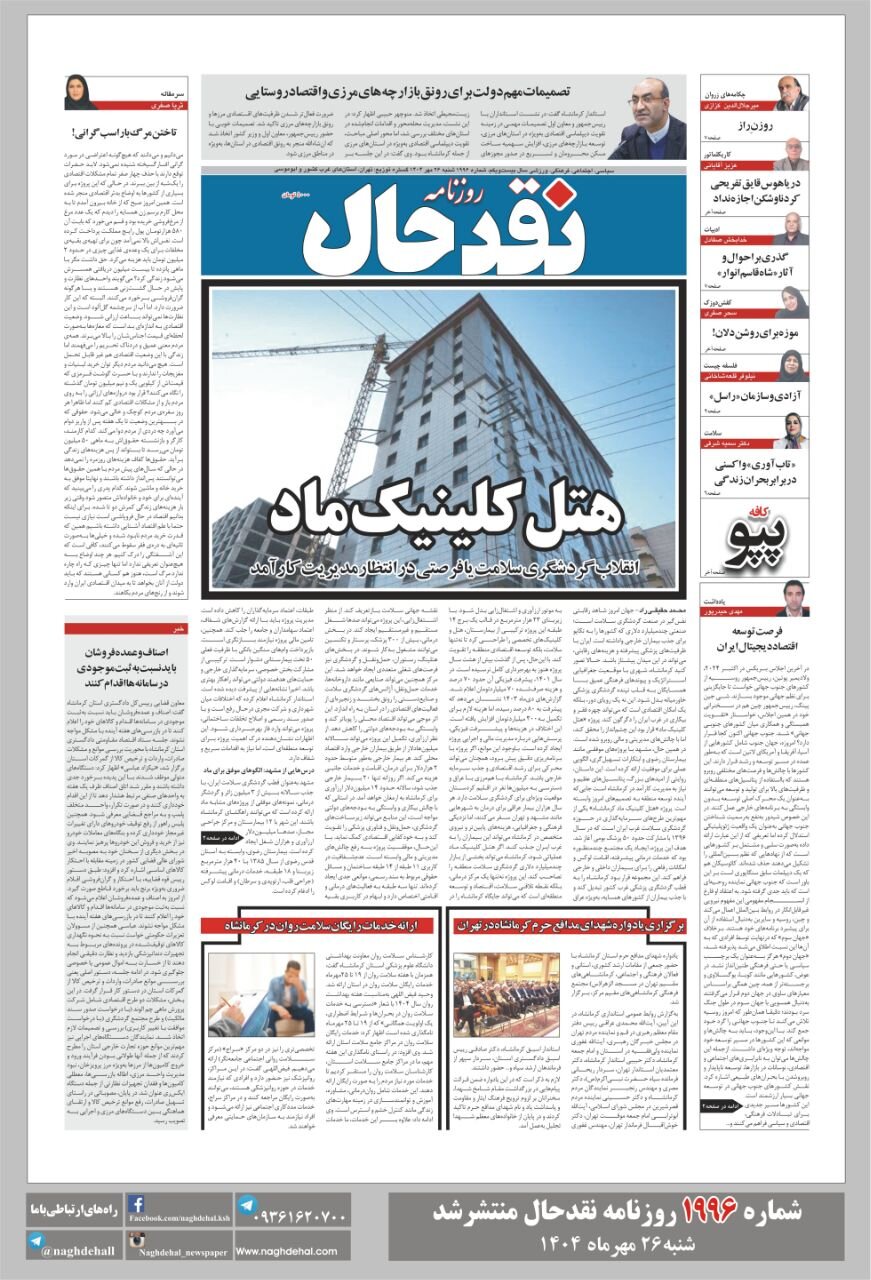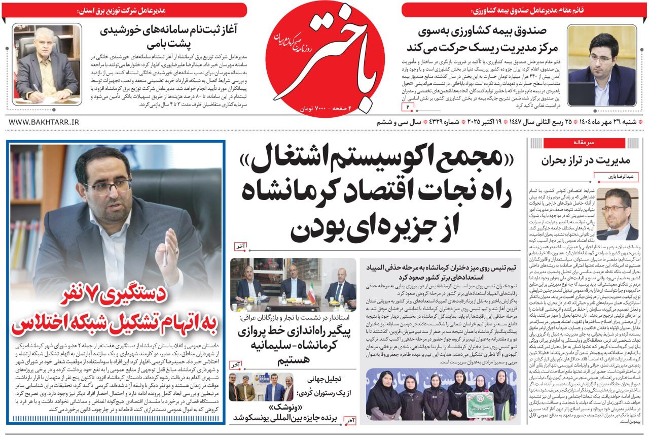 صفحه اول روزنامه‌های کرمانشاه شنبه‌ ۲۶ مهرماه
