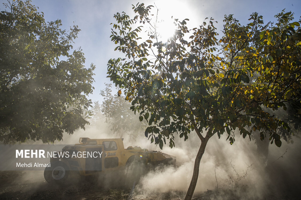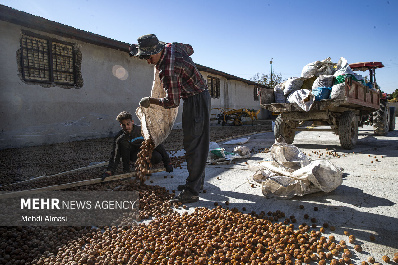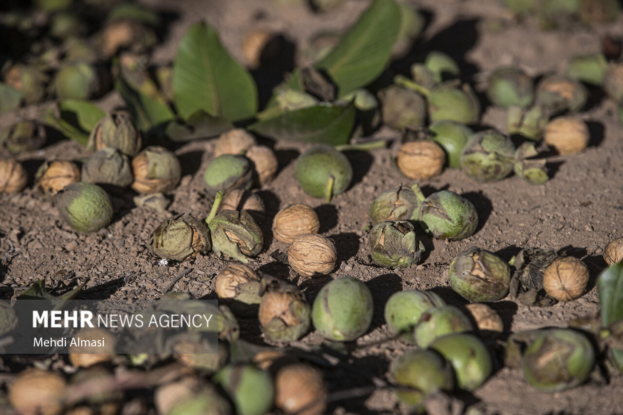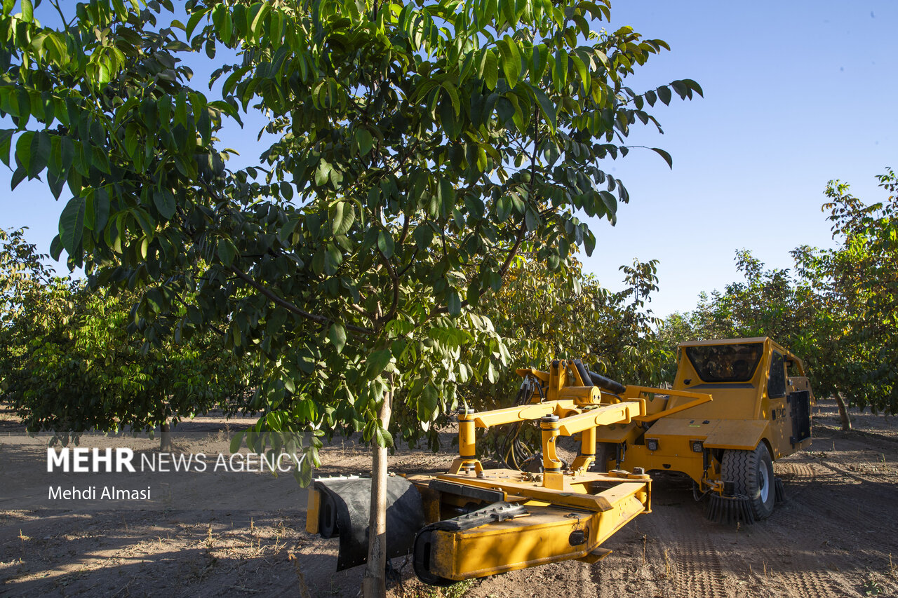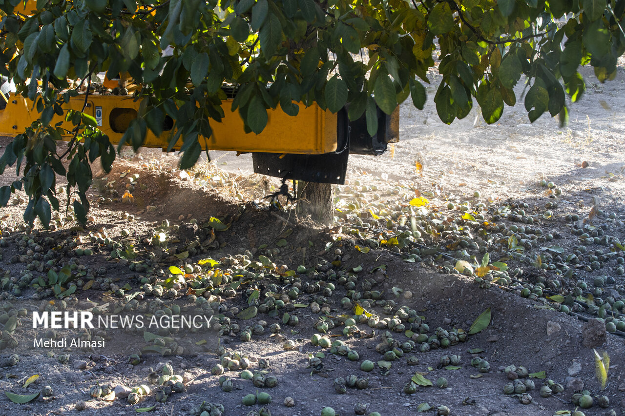 برداشت گردو اصلاح شده با ادوات کشاورزی مکانیزه در شهرستان خرمدره زنجان آغاز شد.