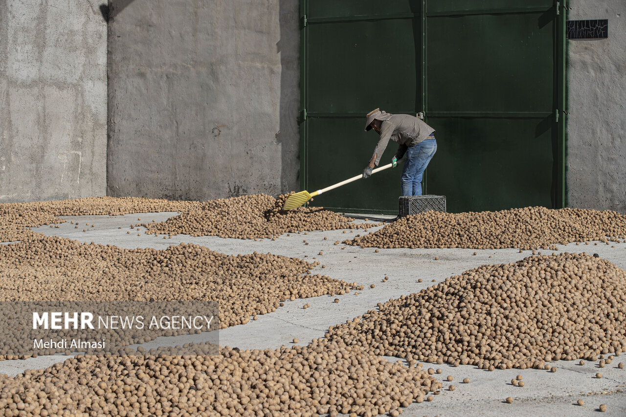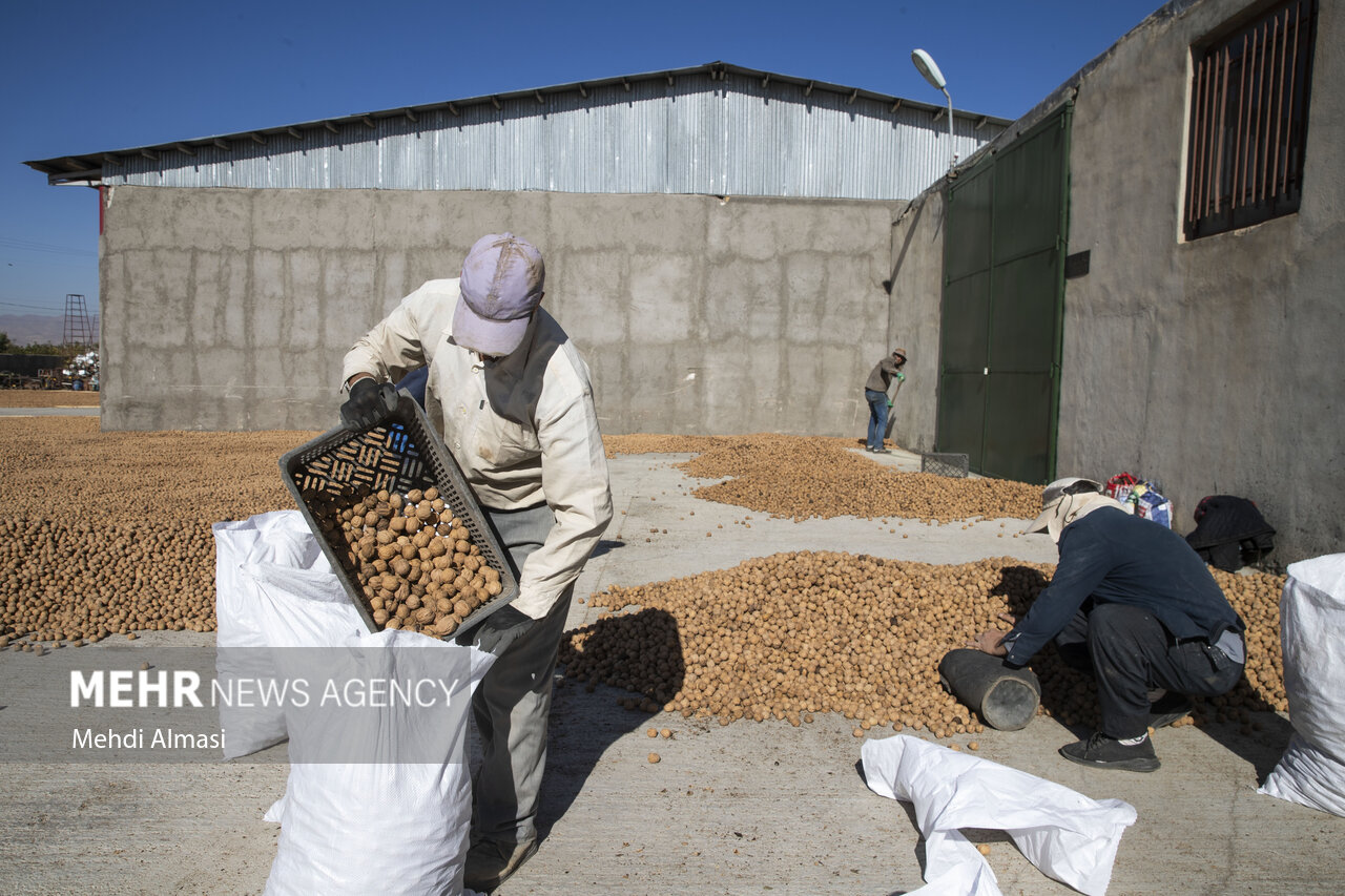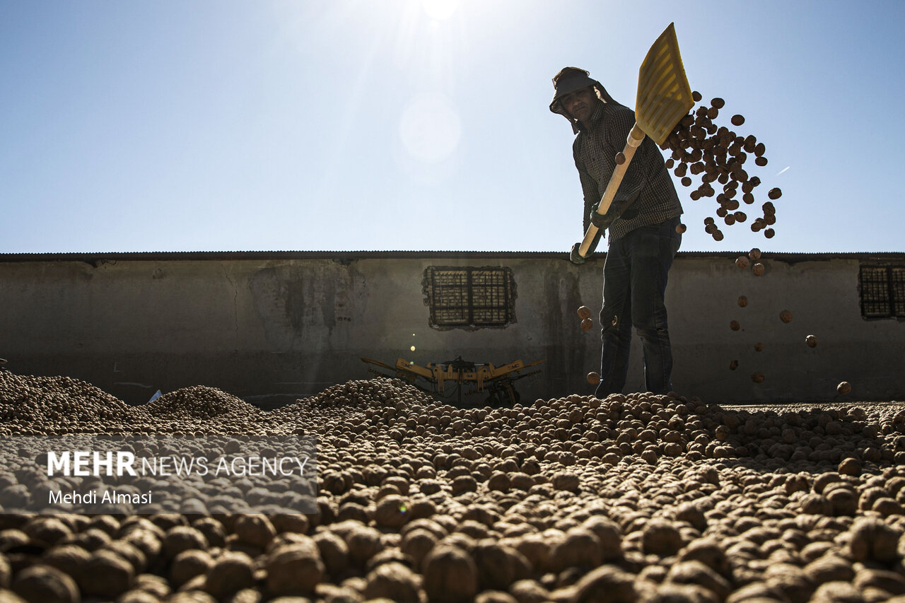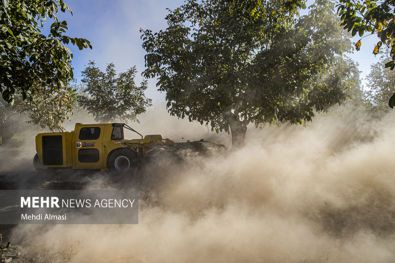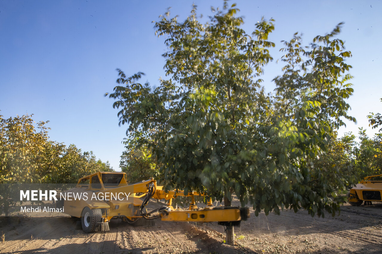 برداشت گردو اصلاح شده با ادوات کشاورزی مکانیزه در شهرستان خرمدره زنجان آغاز شد.