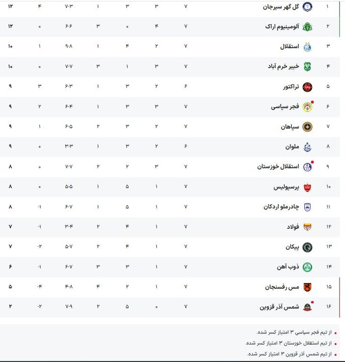 نتایج بازیهای هفته هفتم لیگ برتر به شرح زیر است: