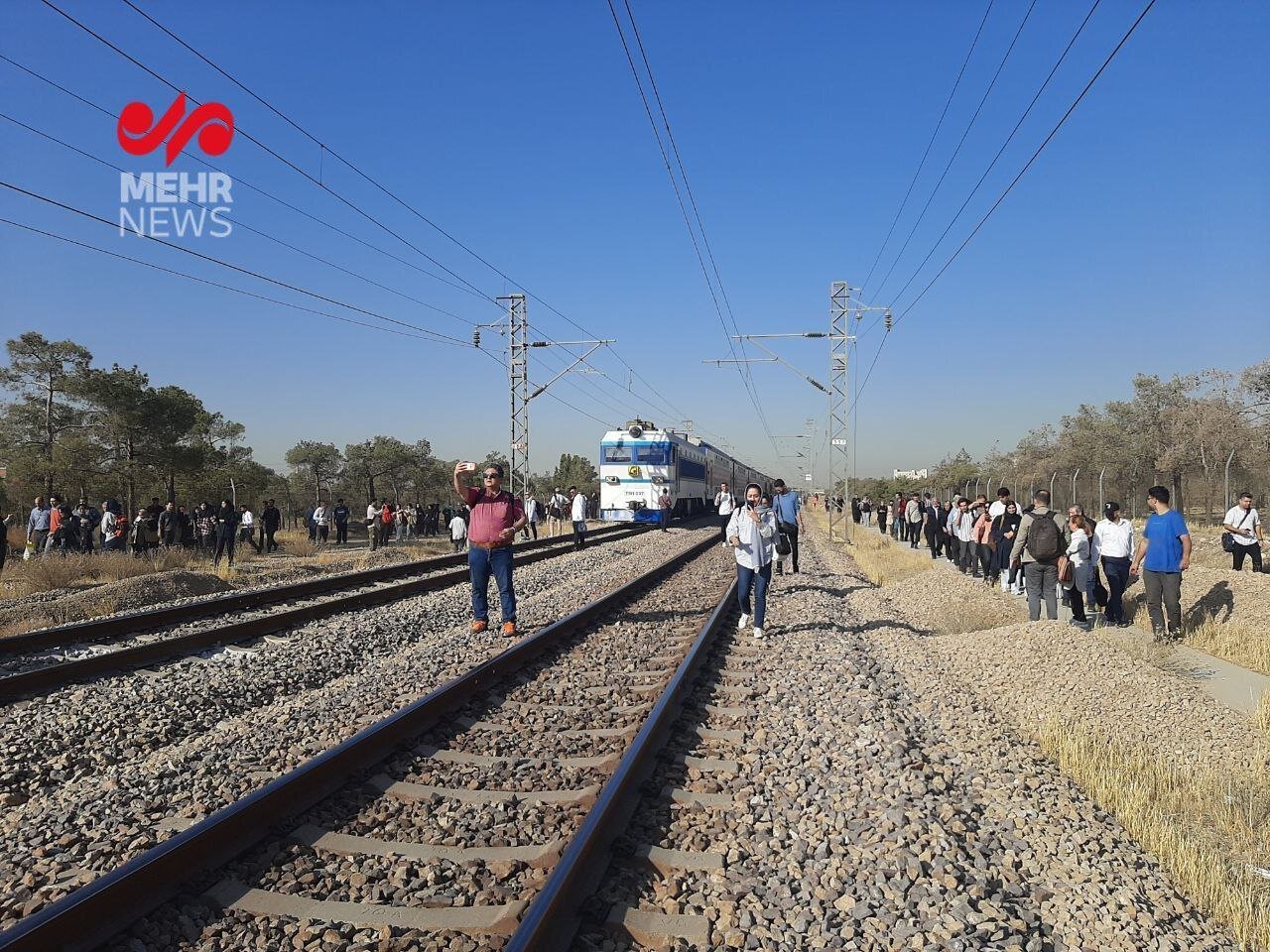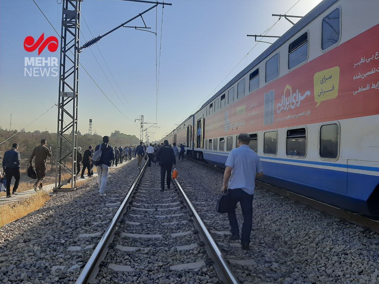 حالا تصاویر منتشر نشان میدهد مسافران از قطار پیاده شده و روی ریل درحال حرکت هستند.