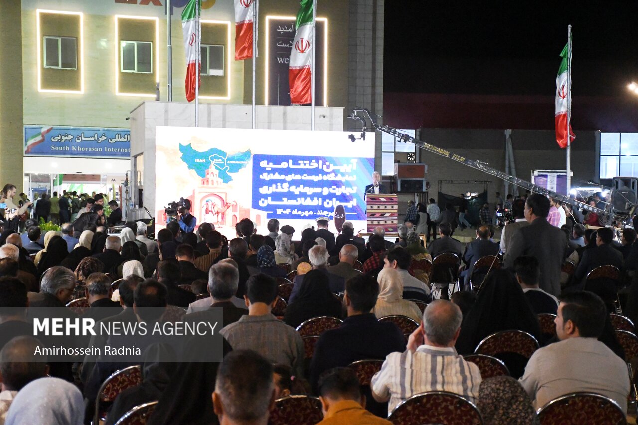اختتامیه نمایشگاه فرصتهای سرمایه گذاری ایران و افغانستان با حضور استاندار، نمایندگان مجلس در استان، مسئولان کشور افغانستان، سرمایه گذاران در محل نمایشگاه بین المللی بیرجند برگزار شد.