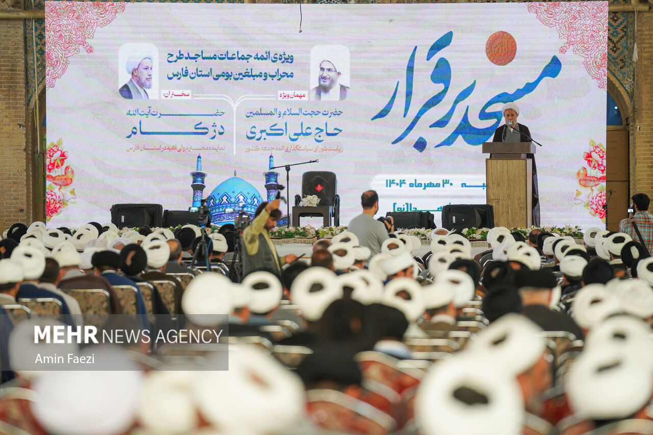 همایش «مسجد برقرار» با حضور حجت الاسلام و المسلمین محمدجواد حاج علی اکبری رئیس شورای سیاستگذاری ائمه جمعه کشور، آیت الله لطف اله دژکام نماینده ولی فقیه در فارس، حسینعلی امیری استاندار فارس و حجت الاسلام و المسلمین محمدباقر ولدان مدیرکل تبلیغات اسلامی فارس ظهر چهارشنبه ۳۰ مهرماه در محل مسجد جامع شهدا شیراز برگزار شد.