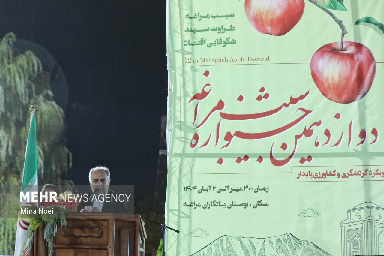 دوازدهمین جشنواره سیب مراغه با حضور بهرام سرمست، استاندار آذربایجان شرقی و جمعی از فعالان بخش کشاورزی و صنایع تبدیلی سیب با برپایی غرفههای عرضه محصولات کشاورزی شهرستان مراغه در بوستان یادگاران شهر مراغه برگزار شد.