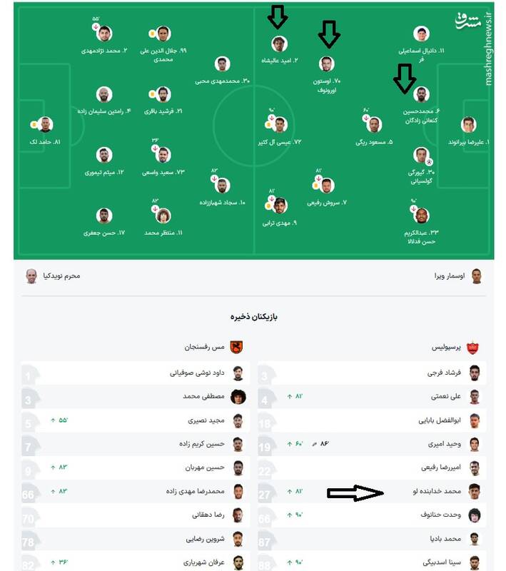 امید عالیشاه، محمدحسین کنعانی زادگان، سروش رفیعی، اوستون اورونوف و محمد خدابنده لو ۵ بازیکنی هستند که در آن بازی در لیست ۱۸ نفره تیم حضور داشتند، که ۴ بازیکن اول در ترکیب اصلی تیم و خدابنده لو روی نیمکت بود و در دقایق پایانی به میدان آمد. پرسپولیس آن بازی را با تک گل گئورگی گولسیانی برد و بالاتر از استقلال قهرمان لیگ برتر شد.