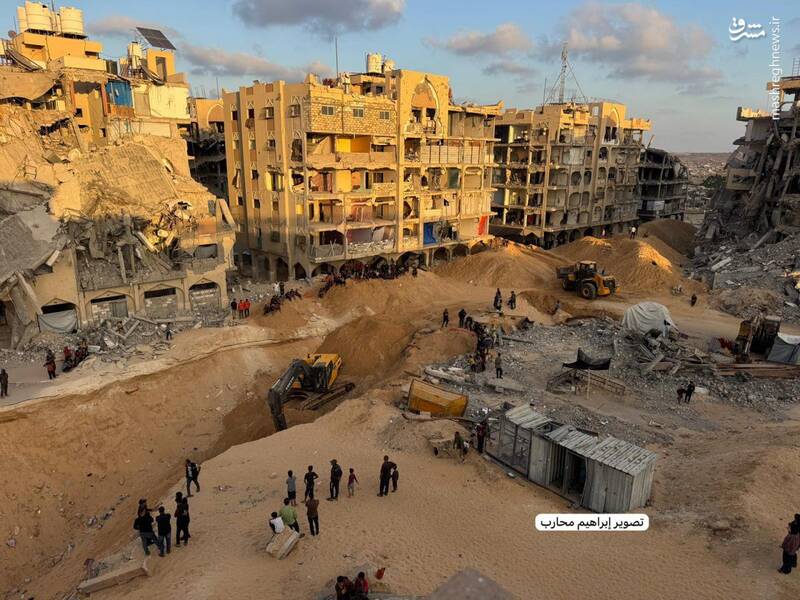 تصاویری از عملیات حفاری در شهر حمد در شمال خان‌یونس