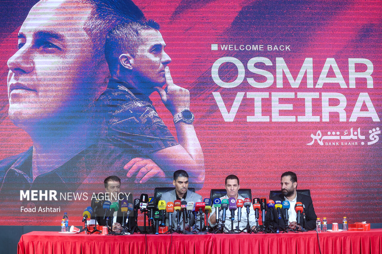 مراسم معارفه و امضای قرارداد اوسمار ویه را سرمربی جدید پرسپولیس صبح امروز چهارشنبه ۷ آبان ۱۴۰۴ با حضور پیمان حدادی مدیر عامل این باشگاه در ساختمان بانک شهر برگزار شد.