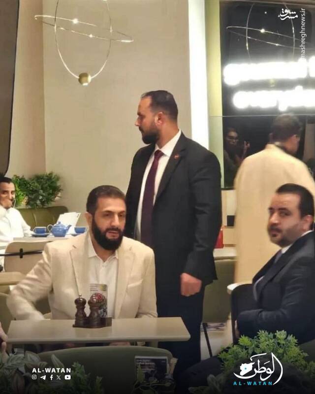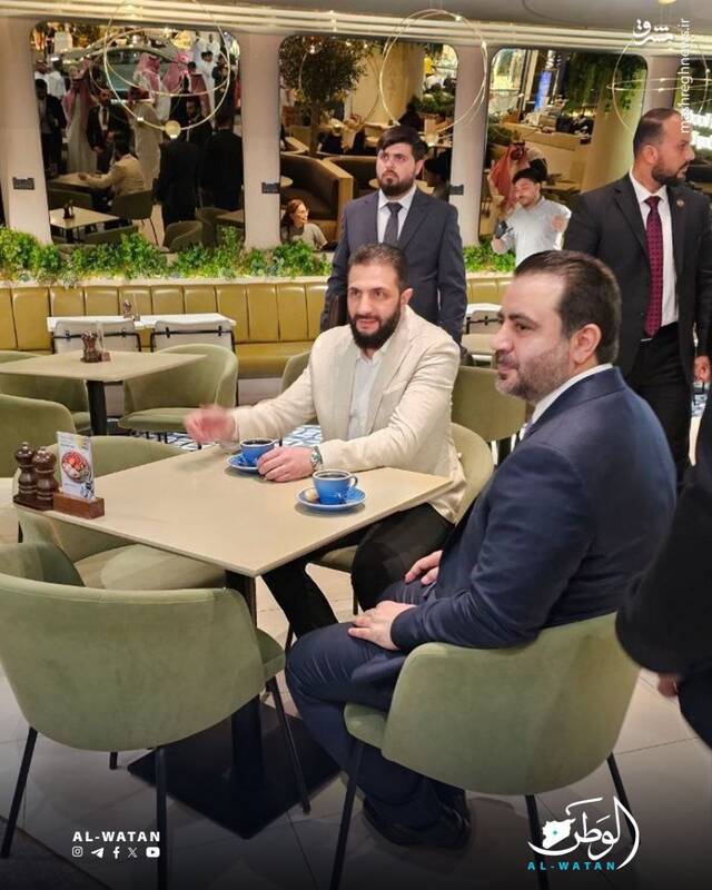 احمد الشرع (جولانی) رئیس موقت سوریه به همراه اسعد الشیبانی، وزیر خارجه سوریه که در ریاض حضور دارد، در یکی از کافه‌های این شهر حضور یافته است.