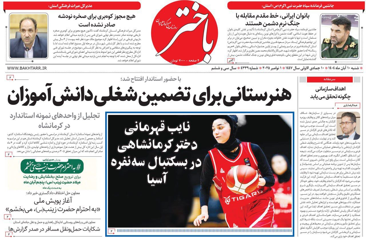 صفحه اول روزنامه‌های کرمانشاه شنبه‌ ۱۰ آبان‌ماه