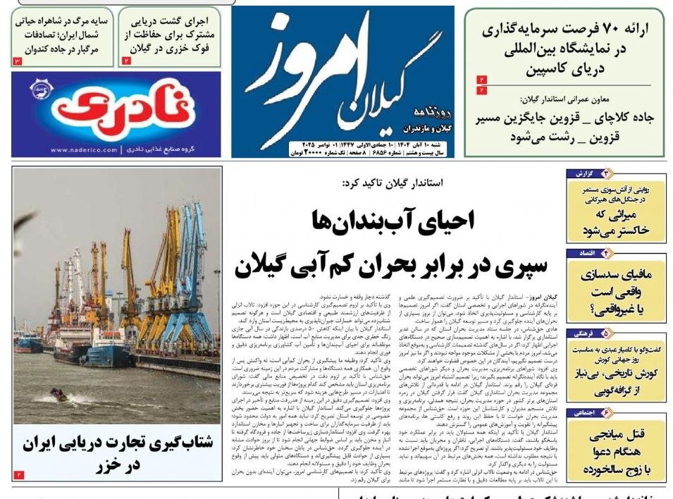صفحه اول روزنامه های گیلان ۱۰ آبان ۱۴۰۴