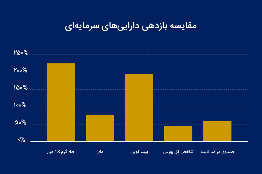 بازدهی طلا در قالب هر گرم طلای ۱۸ عیار از ابتدای سال 1403 تا به امروز (10 آبان 1404) به حدود 226 درصد رسیده است؛ رقمی که از دلار بهمراتب بالاتر است. بیتکوین نیز با وجود بازدهی خیرهکننده، رشدی کمتر از 200 درصد را در این بازه زمانی (از نظر ریالی) ثبت کرده است. البته بیت کوین هنوز برای روز مبادا چندان مطمئن به نظر نمیرسد.