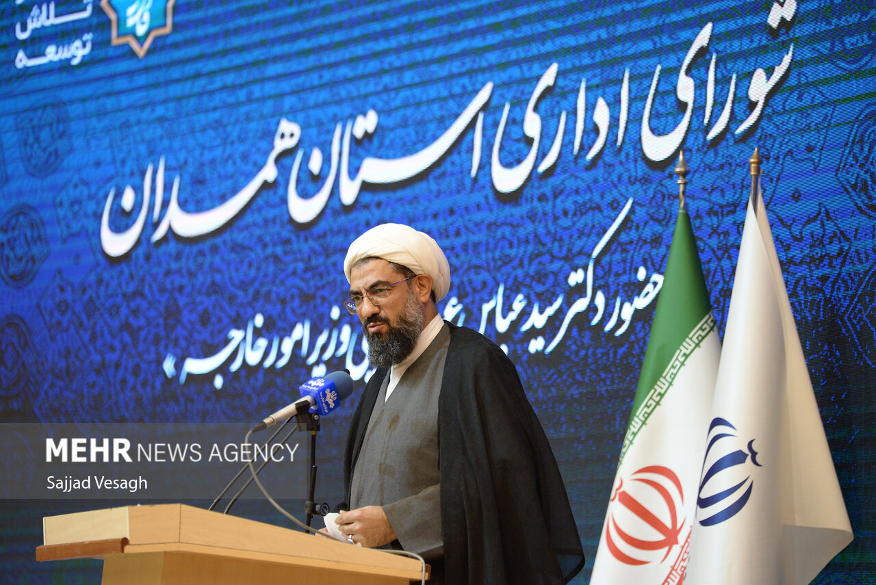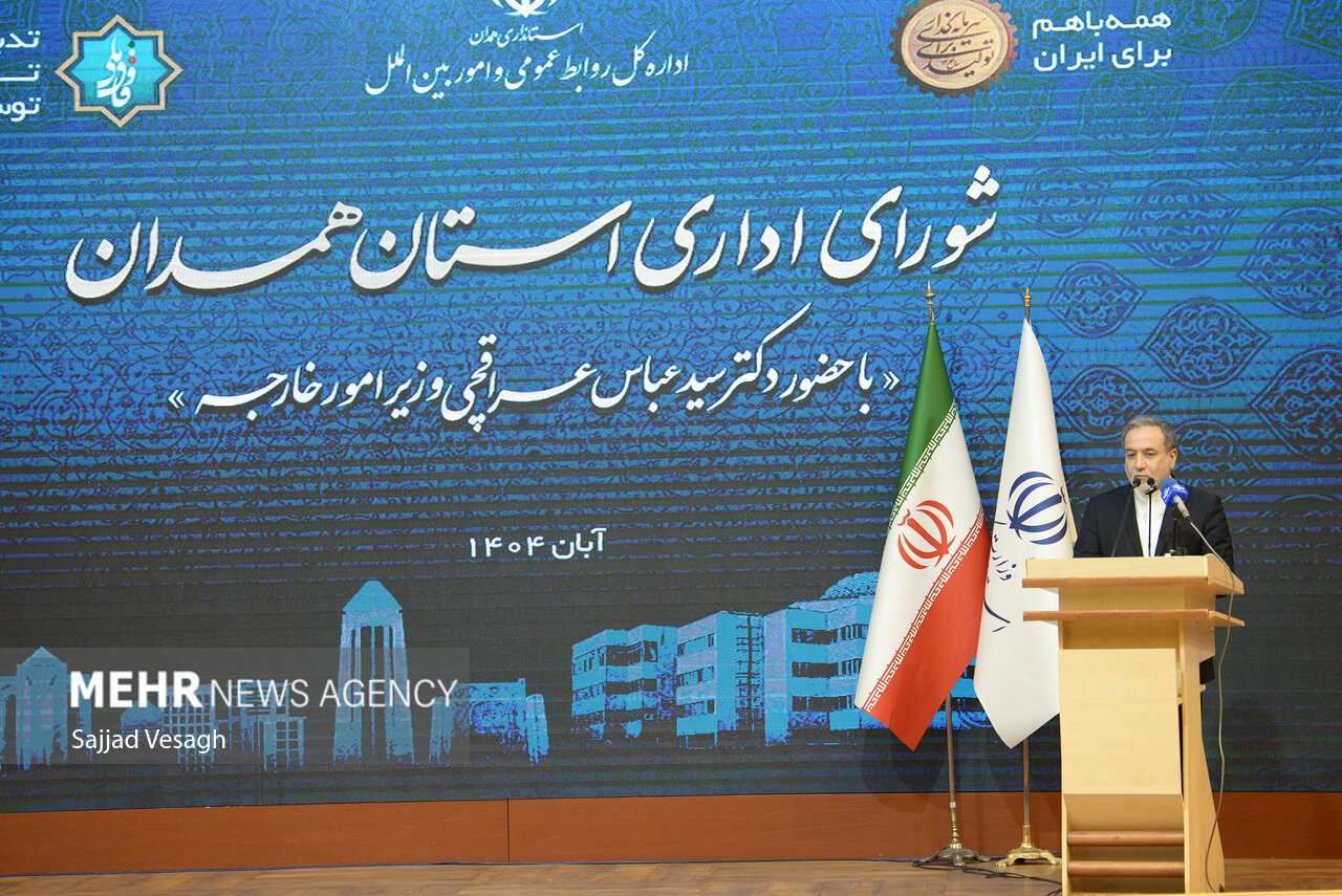 سید عباس عراقچی، وزیر امور خارجه کشور عصر امروز چهارشنبه ۱۴ آبان ماه ۱۴۰۴، در سفری دو روزه به همدان در شورای اداری استان همدان حضور یافت. در پایان این مراسم که با حضور نمایندگان مردم استان همدان در مجلس شورای اسلامی برگزار شد، دفتر نمایندگی وزارت خارجه در استان همدان افتتاح شد.