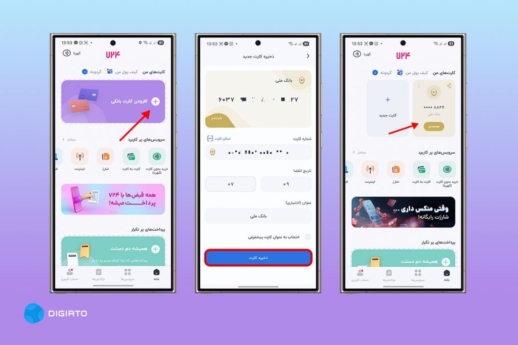 آموزش گامبهگام ثبت کارت از طریق برنامه 724