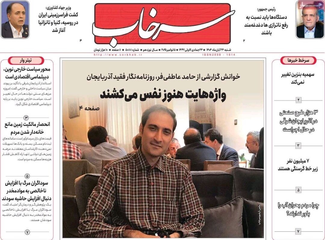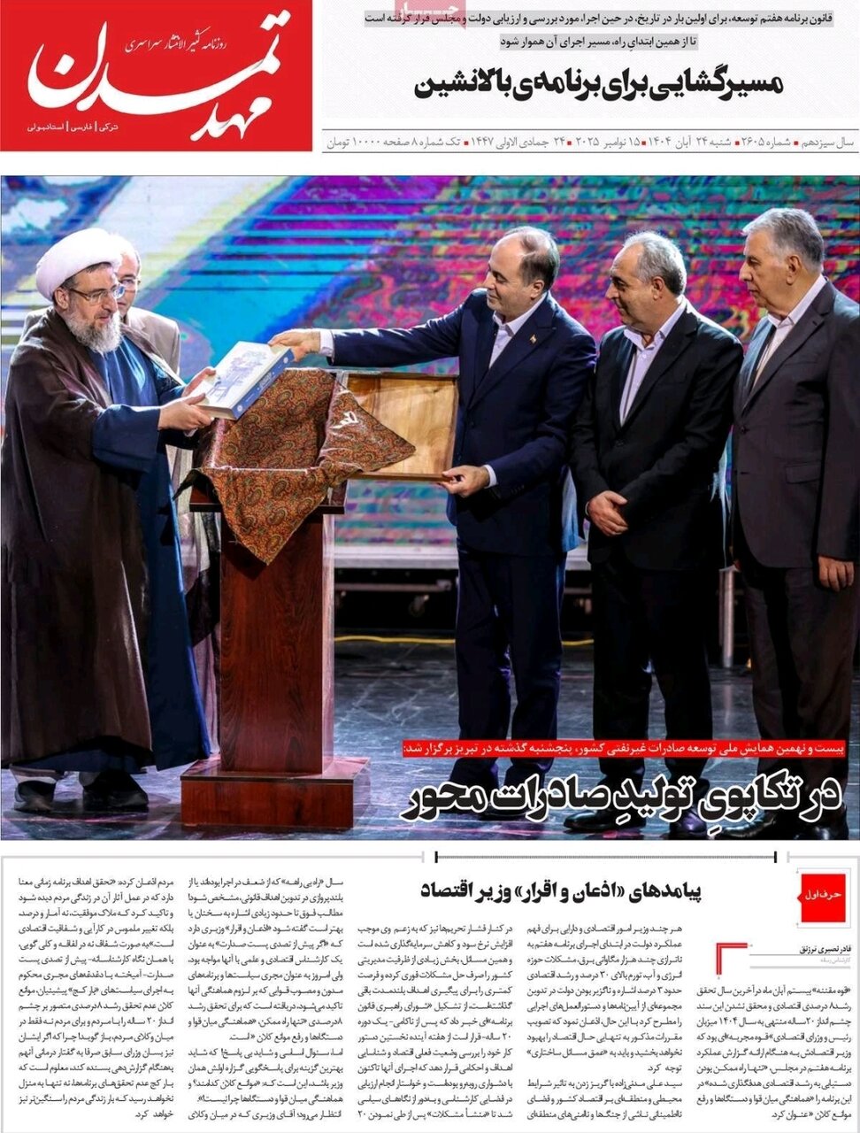صفحه نخست روزنامه‌های آذربایجان شرقی ۲۴ آبان ۱۴۰۴
