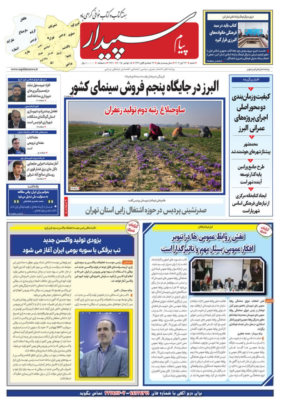 صفحه اول روزنامه‌های استان البرز شنبه ۲۴ آبان ماه