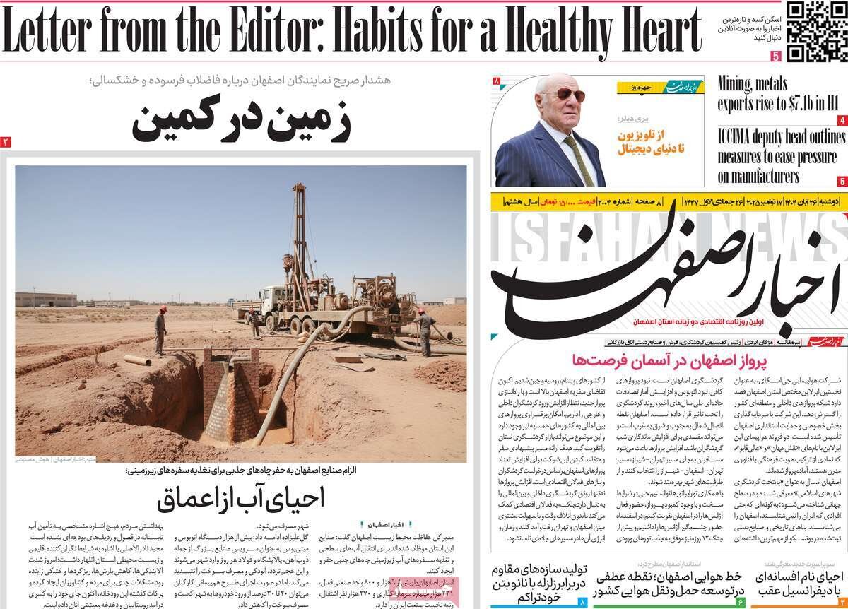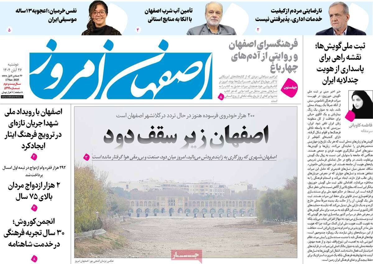 صفحه نخست روزنامه‌های اصفهان دوشنبه ۲۶ آبان