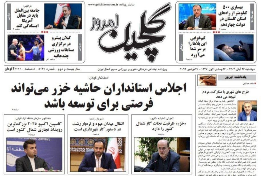 صفحه اول روزنامه های گیلان ۲۶ آبان ۱۴۰۴