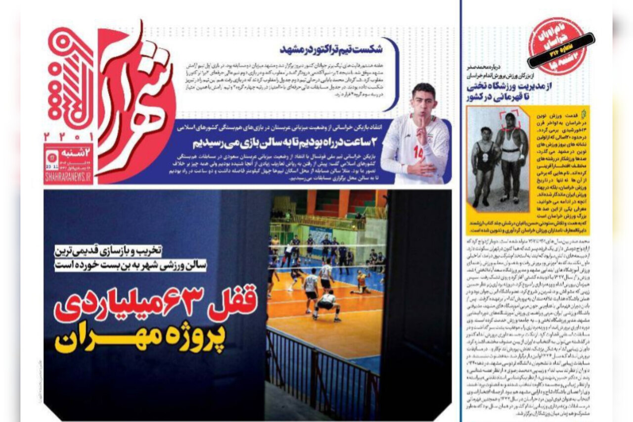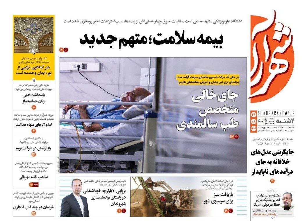 صفحه اول روزنامه های خراسان رضوی دوشنبه ۲۶ آبان