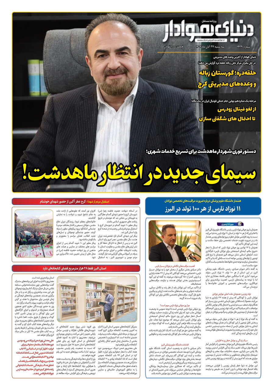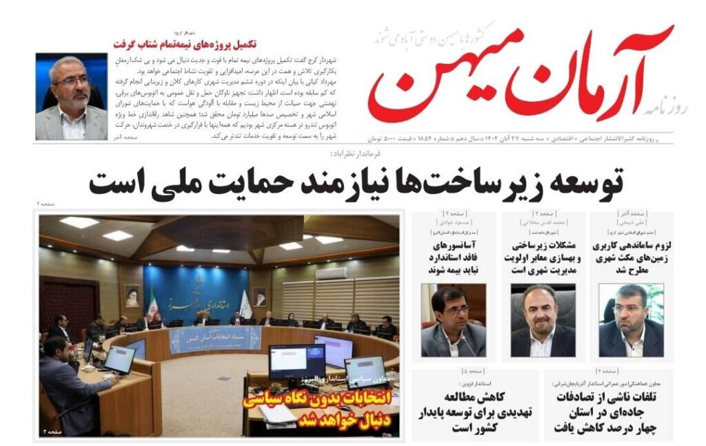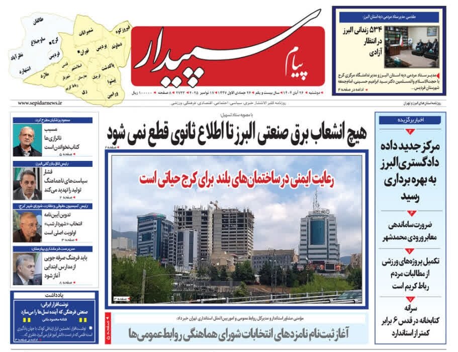 صفحه اول روزنامه‌های استان البرز سه‌شنبه ۲۷ آبان ماه