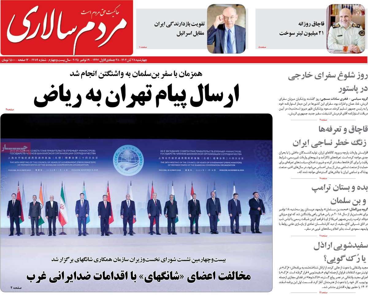 دیدار .لیعد عربستان با ترامپف مخالفت اجلاس شانگهای با زیاده خواهی های امریکا و... از تیترهای مطبوعات ایران است.