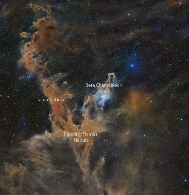 به گزارش همشهری آنلاین، گاهی اوقات غبار تاریک فضای میانستارهای، ظرافت زاویهای دارد. چنین چیزی در صورت فلکی جنوبی و دوردست «آفتابپرست»(Chamaeleon) صدق میکند.