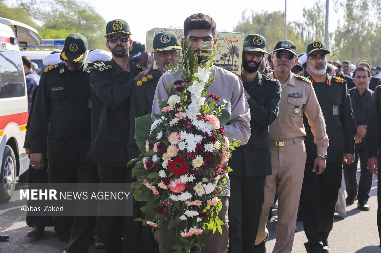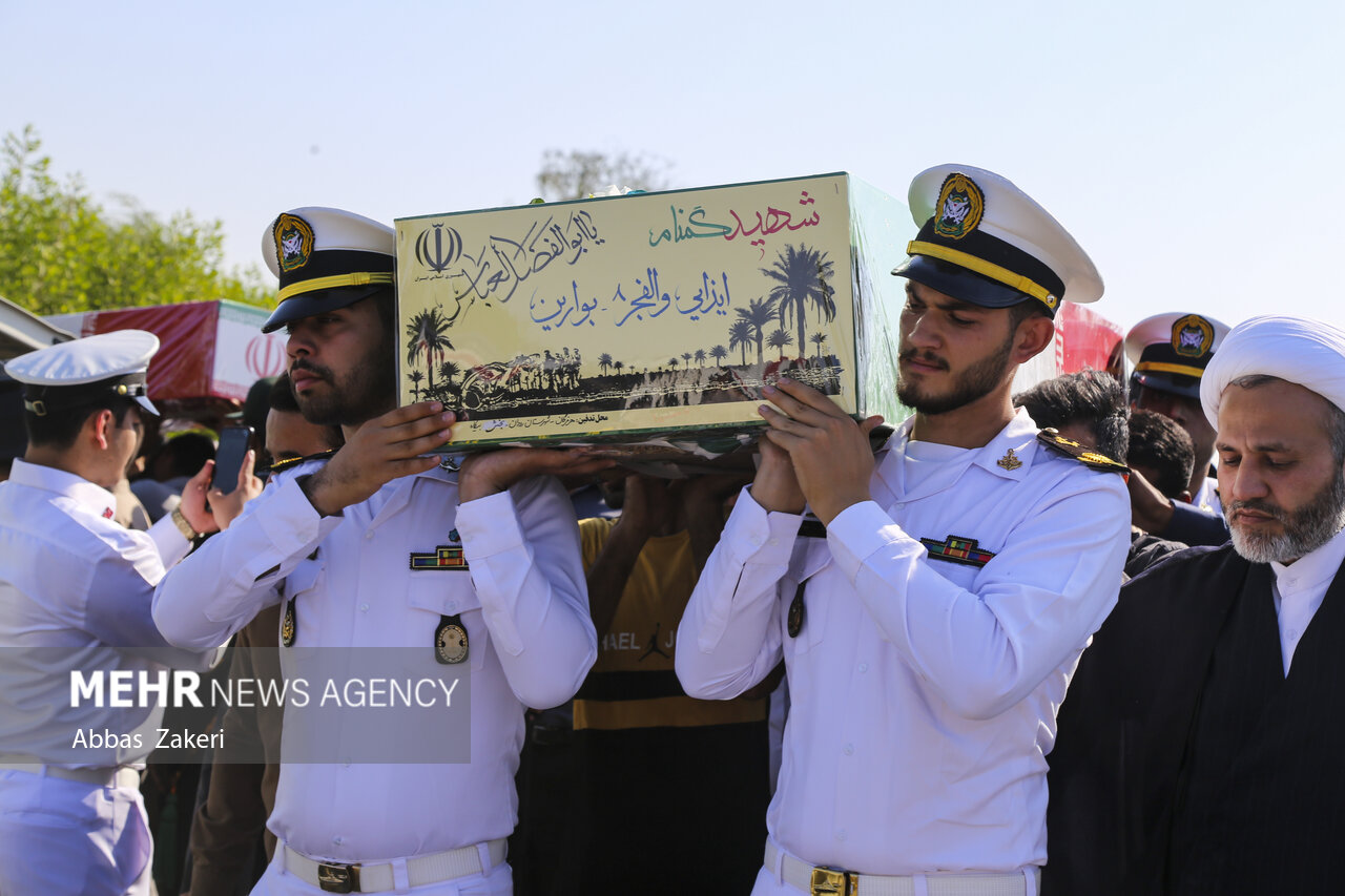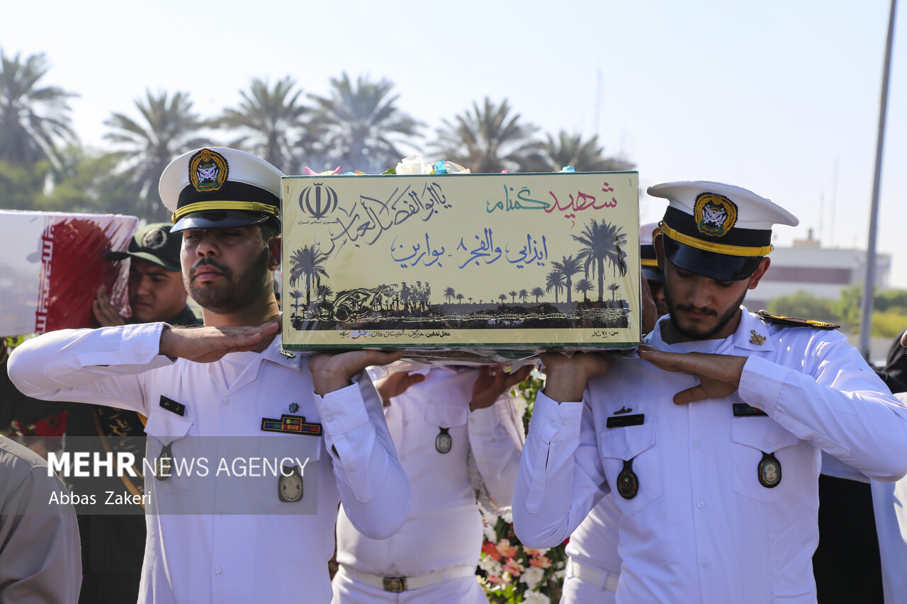 آئین استقبال از پیکر مطهر ۱۴ شهید گمنام گلگون کفن هشت سال دفاع مقدس در فرودگاه بینالمللی بندرعباس برگزار شد.