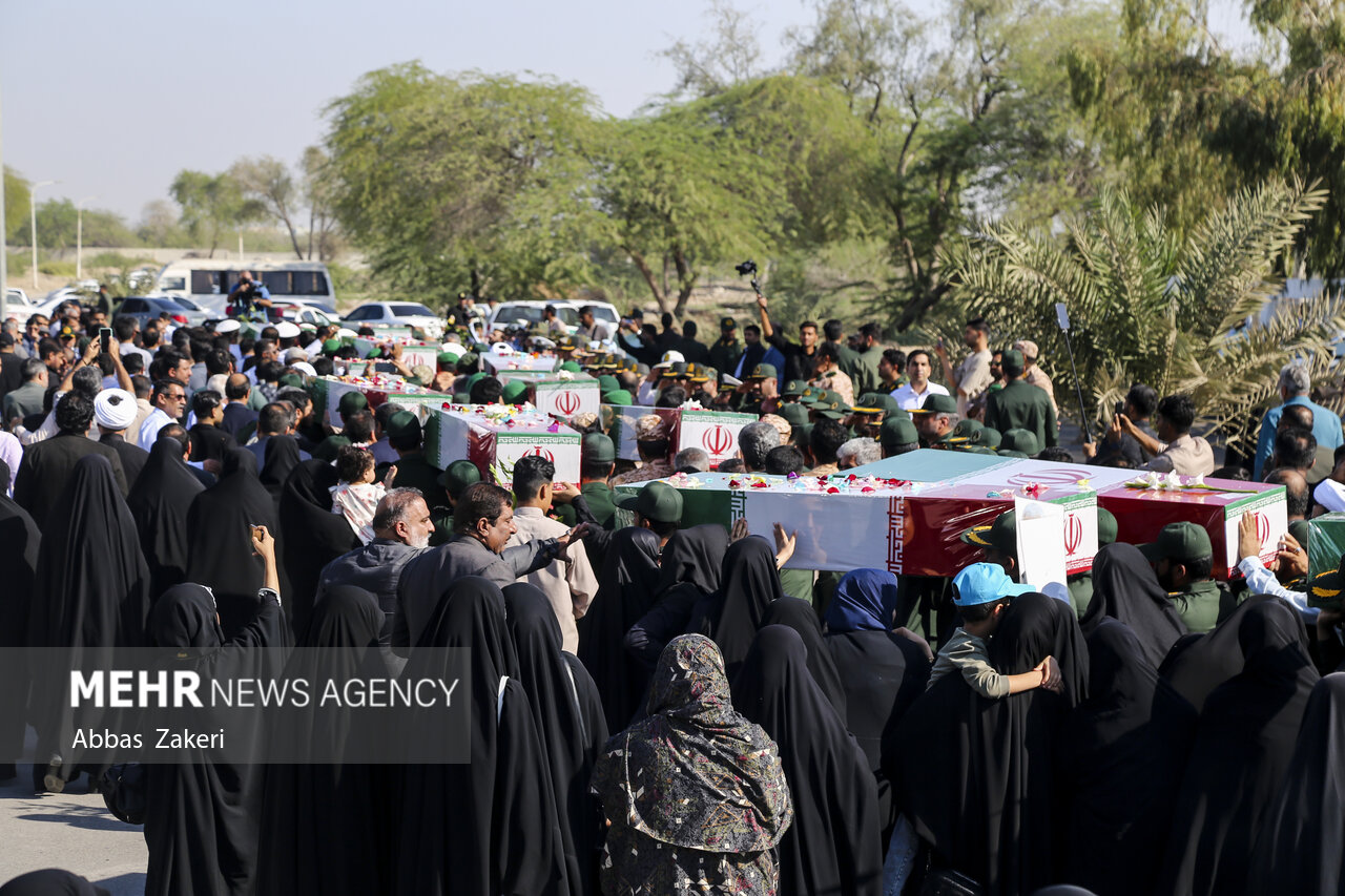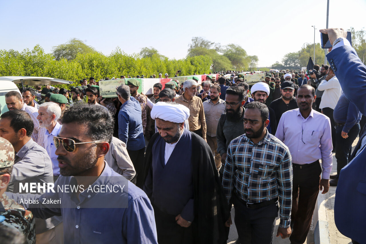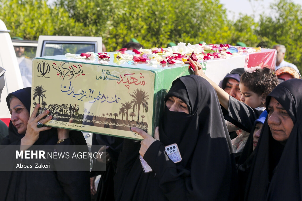 آئین استقبال از پیکر مطهر ۱۴ شهید گمنام گلگون کفن هشت سال دفاع مقدس در فرودگاه بینالمللی بندرعباس برگزار شد.