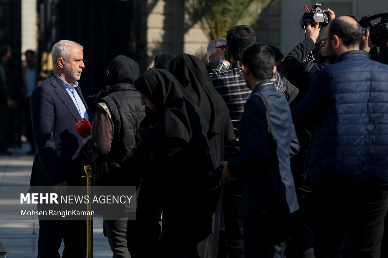 جمعی از وزیران و اعضای کابینه دولت چهاردهم، پیش از ظهر چهارشنبه ۲۸ آبان ۱۴۰۴ پس از جلسه هیأت دولت، در محوطه نهاد ریاست جمهوری در جمع خبرنگاران حاضر شدند و به سوالات آنها پاسخ دادند.