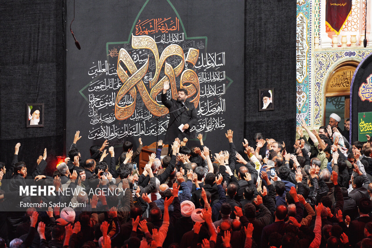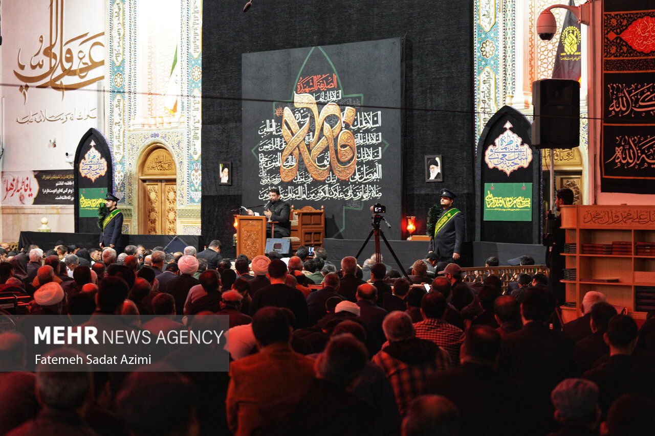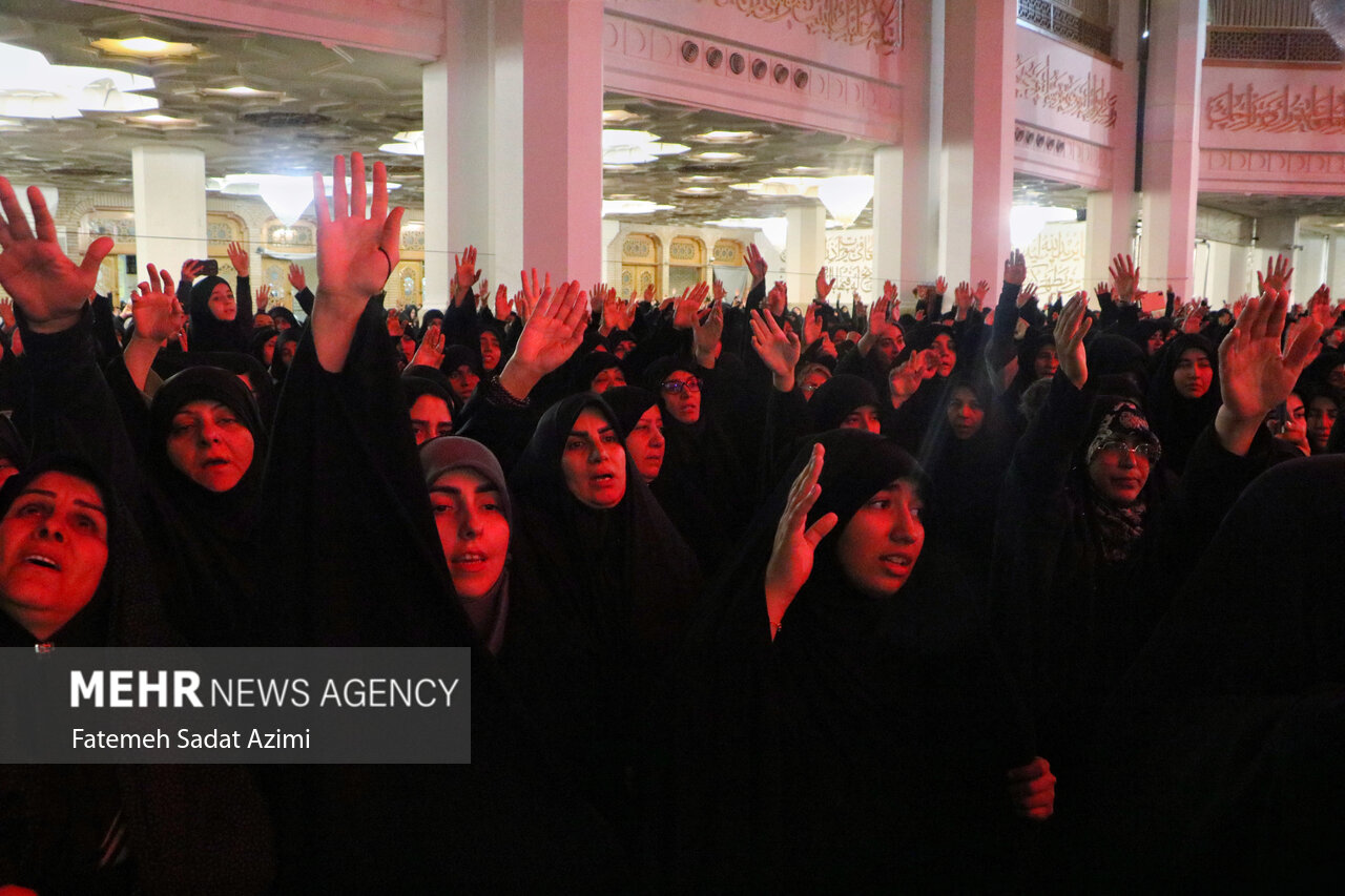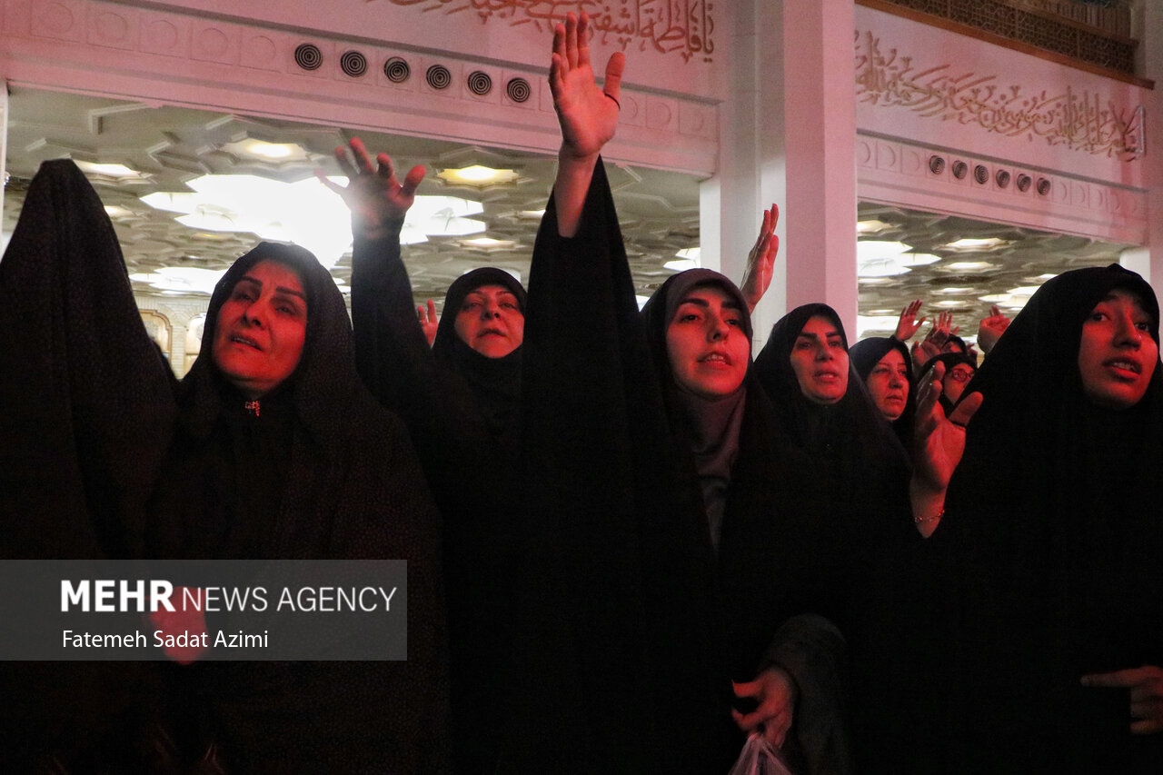 در شب شهادت حضرت فاطمه زهرا (س) زائران و مجاوران کریمه اهل بیت علیهمالسلام در حرم مطهر بانوی کرامت به عزاداری و سوگواری پرداختند.