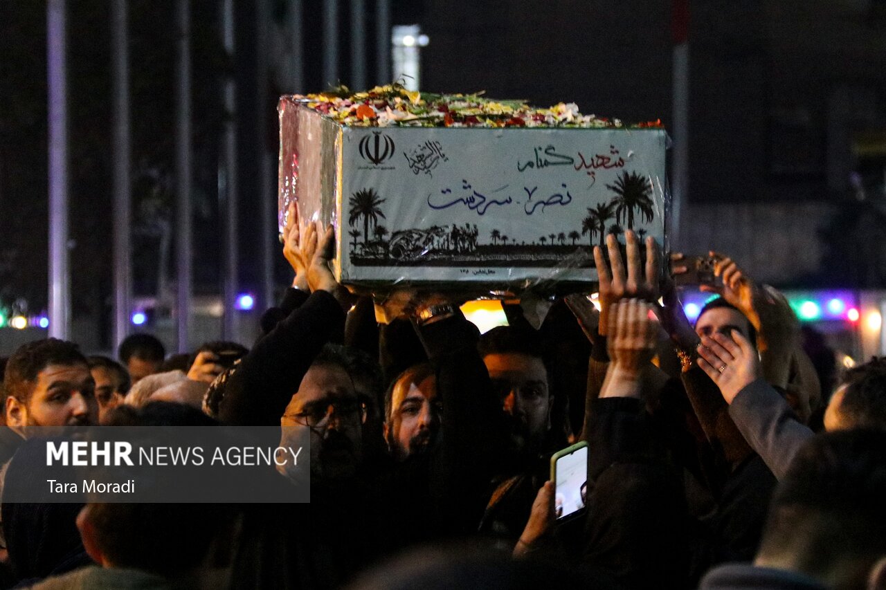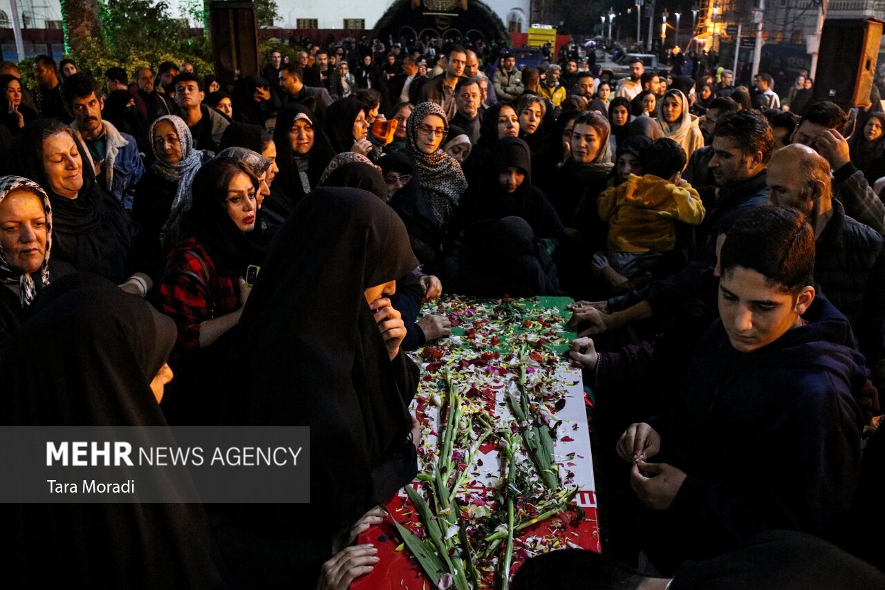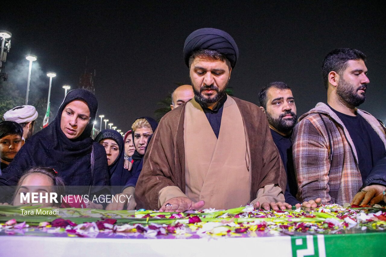مردم رشت در شب شهادت حضرت فاطمه الزهرا (س) با شهید خوشنام از کربلای ایران به میزبانی ایستگاه صلواتی پایگاه امام خامنه‌ای (حفظه الله تعالی) در پیاده‌راه فرهنگی این شهر وداع کردند.
