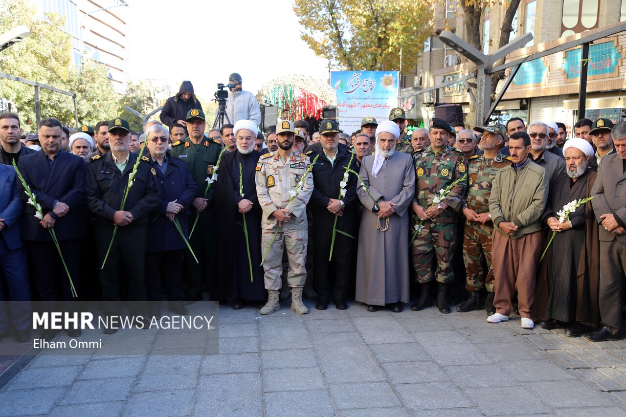 مراسم تشییع پیکر مطهر سه شهید گمنام دوران دفاع مقدس، صبح دوشنبه همزمان با سراسر کشور، با حضور جمعی از مسئولان، خانواده‌های معظم شهدا، و مردم شهیدپرور سنندج در میدان آزادی پیاده‌راه فردوسی تا میدان انقلاب برگزار شد.
