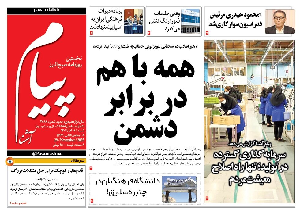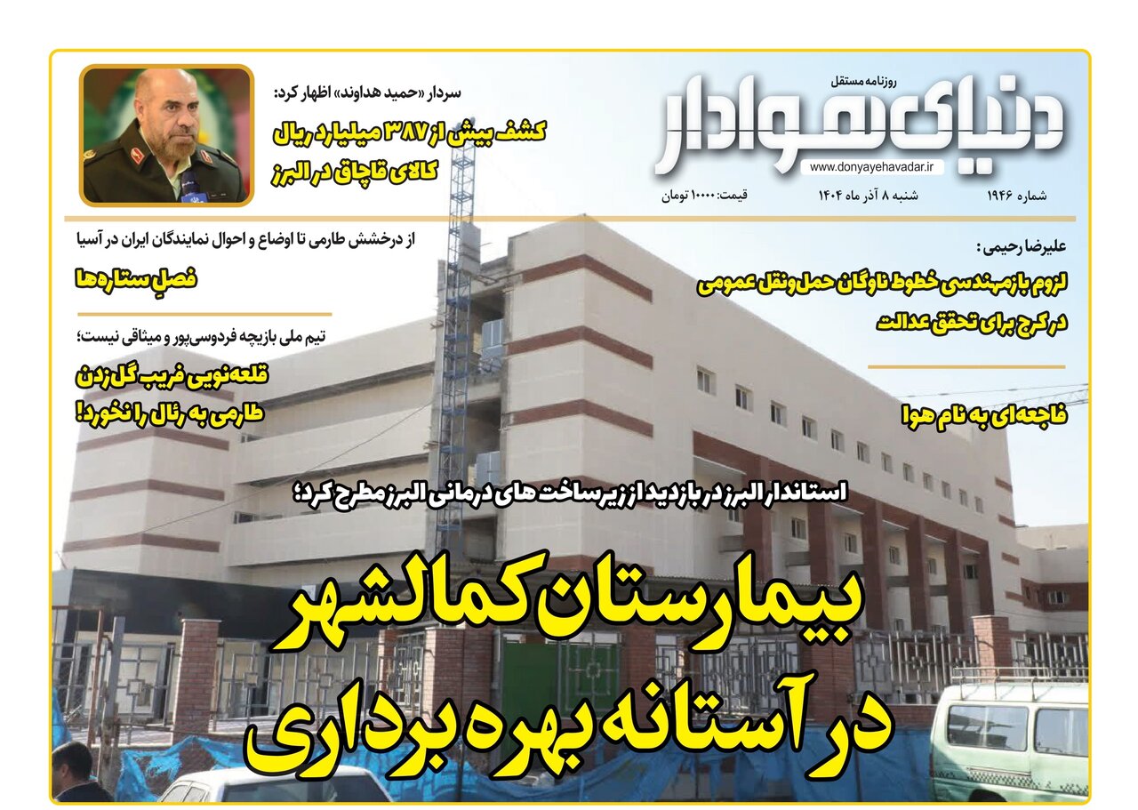 صفحه اول روزنامه‌های استان البرز شنبه ۸ آذرماه