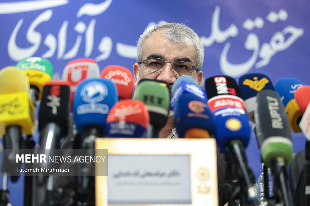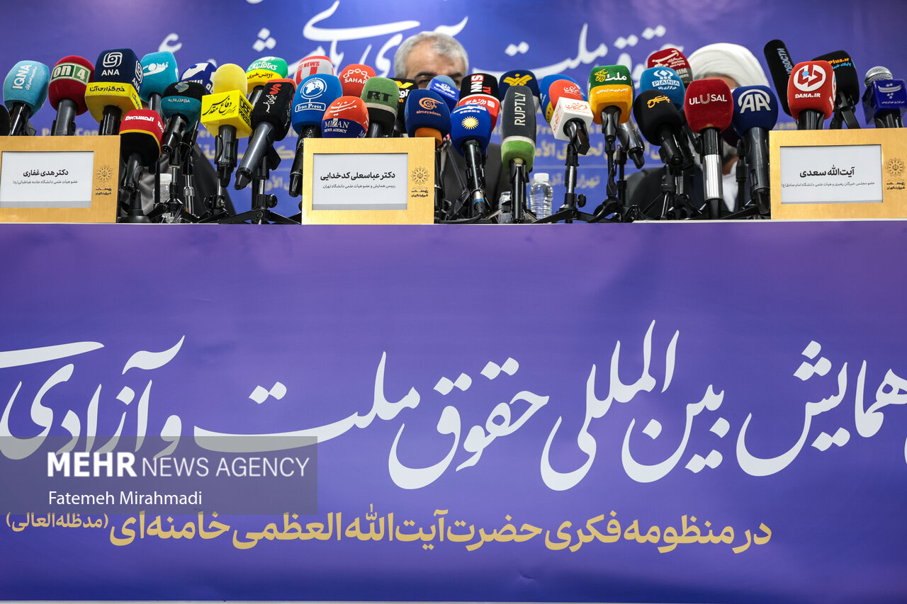 نشست خبری همایش حقوق ملت و آزادیهای مشروع در منظومه فکری مقام معظم رهبری با حضور عباسعلی کدخدایی رئیس پژوهشکده شورای نگهبان، آیت الله حسینعلی سعدی عضو مجلس خبرگان رهبری و هیئت علمی دانشگاه امام صادق (ع)، محمد اسحاقی معاون پژوهشی مؤسسه انقلاب اسلامی و عضو هیئت علمی دانشگاه تهران و هدی غفاری عضو هیئت علمی دانشگاه علامه طباطبایی برگزار شد.