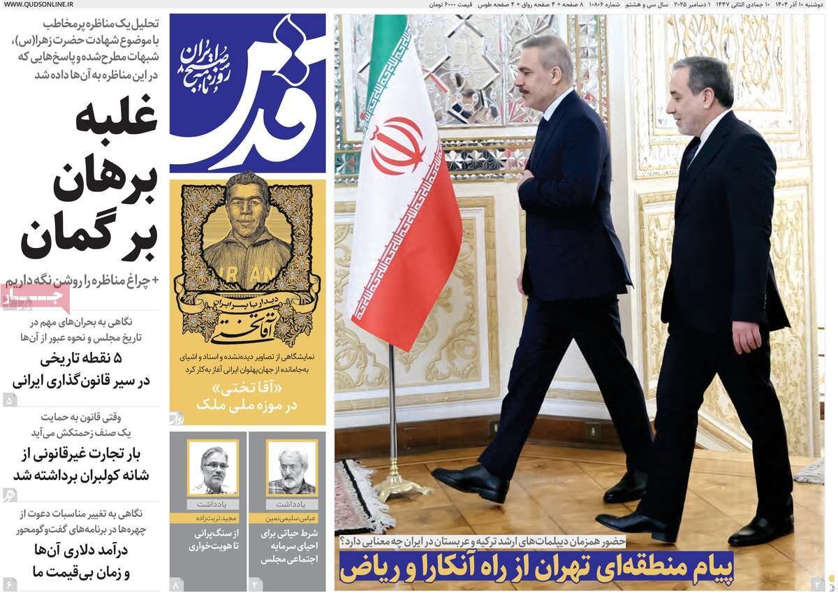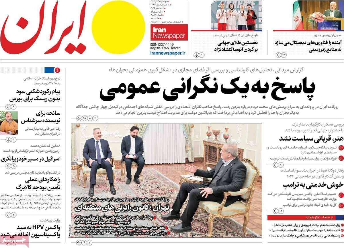 سفر وزیرخارجه ترکیه به تهران، حادثه برای همسر معاون رئیس مجمهور و رضا امیرخانی و... از تیترهای مطبوعات امروز است.