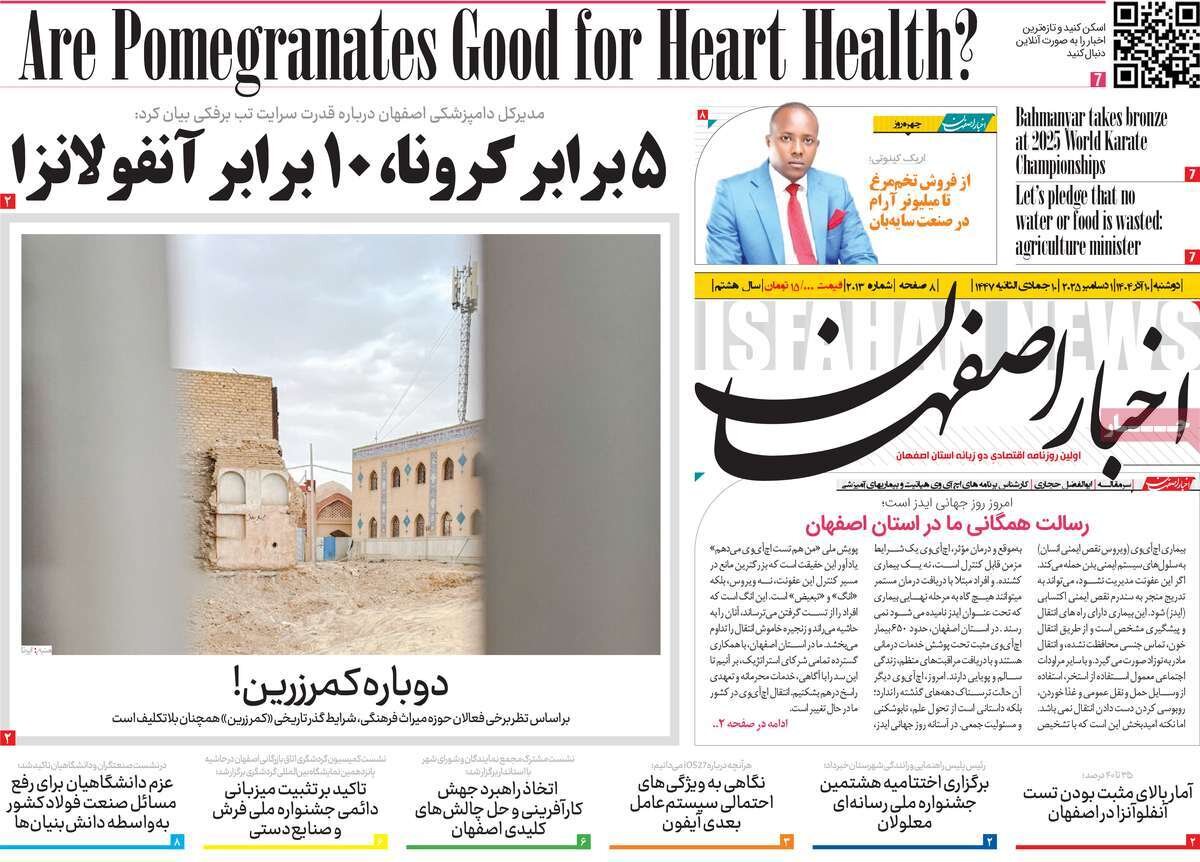 صفحه نخست روزنامه‌های اصفهان دوشنبه ۱۰ آذر