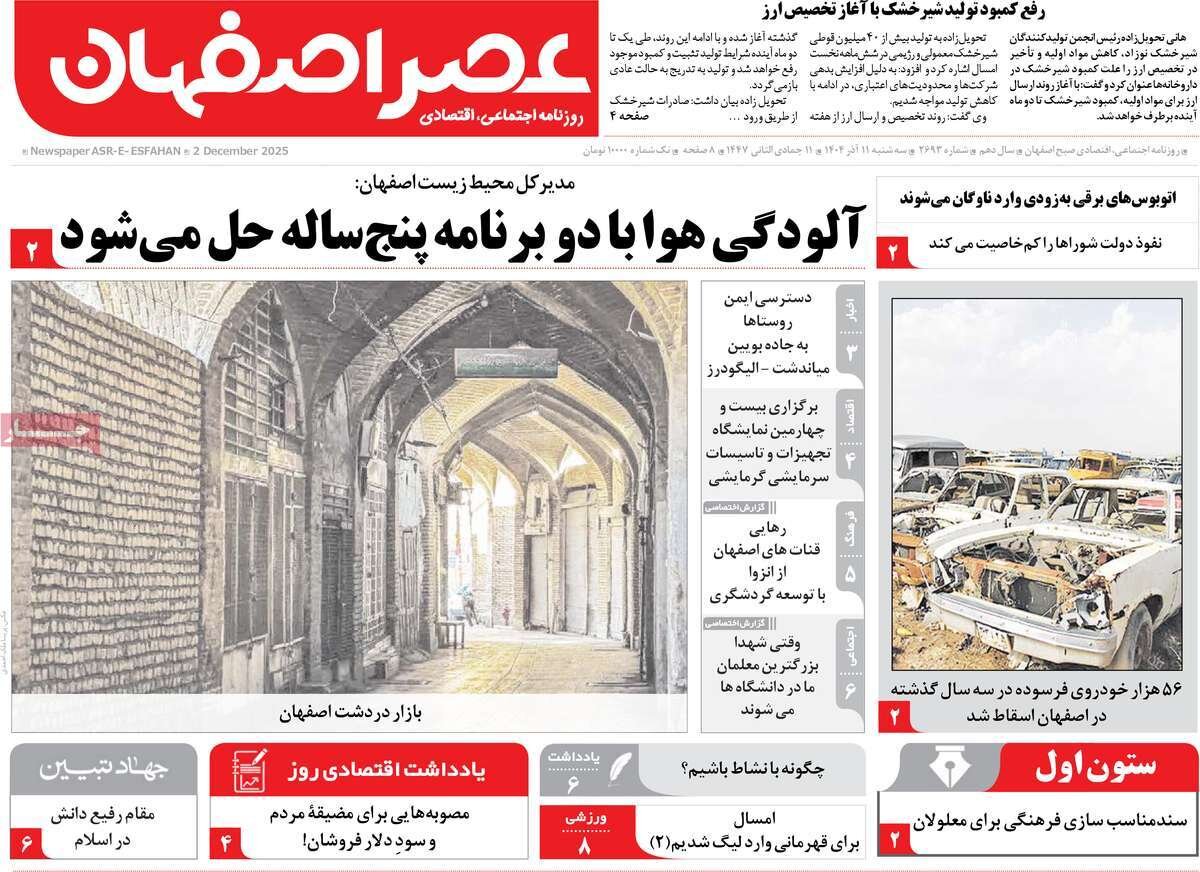 صفحه نخست روزنامه‌های اصفهان سه‌شنبه ۱۱ آذر