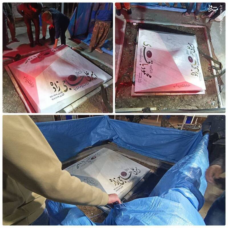 به گزارش شمال نیوز، سنگ مزار شهیدان سردار امیرعلی حاجیزاده و سردار محمود باقری تعویض شد. ایده این اثر از «کوه» به عنوان نمادی از سربلندی و پایداری گرفته شده و بهصورت سنگ مزار مشترک شهیدان حاجیزاده و محمود باقری توسط مسعود نجابتی طراحی شده است.