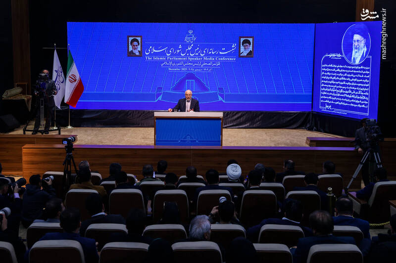 دومین نشست خبری محمدباقر قالیباف، رئیس مجلس شورای اسلامی عصر امروز ۱۱ آذر ۱۴۰۴ در ساختمان شیخ فضلالله نوری مجلس برگزار شد.