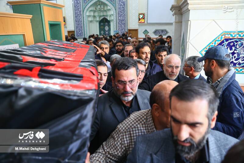 آیین تشییع حاجیهخانم فاطمه حیدری و کربلایی حسنا سقاب اصفهانی همسر و فرزند سقاب اصفهانی معاون رئیس جمهور امروز چهارشنبه ۱۲ آذر ۱۴۰۴ در مسجد جامع الزهرا(س) با حضور محمدباقر قالیباف رئیس مجلس برگزار شد.