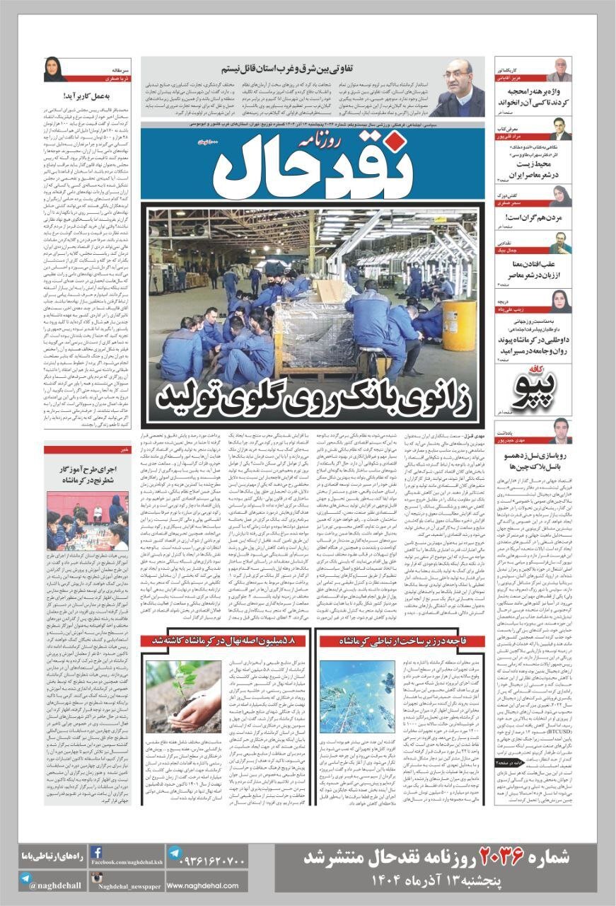 صفحه اول روزنامه‌های کرمانشاه پنجشنبه ۱۳ آذرماه