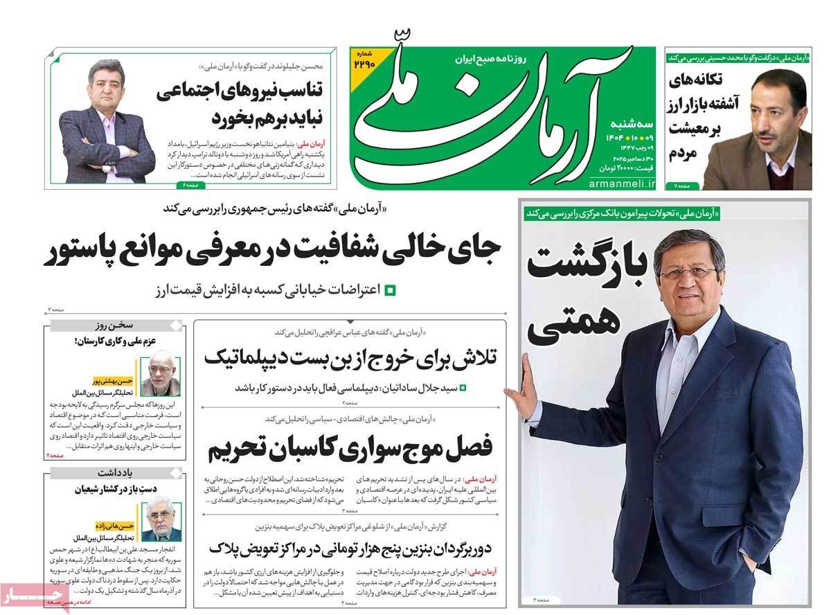 بازگشت همتی به دولت پزشکیان، هشدار محسنی اژه ای به مفسدان اقتصادی، بازتاب تجمع بازاریان و... از تیترهای مطبوعات امروز است.