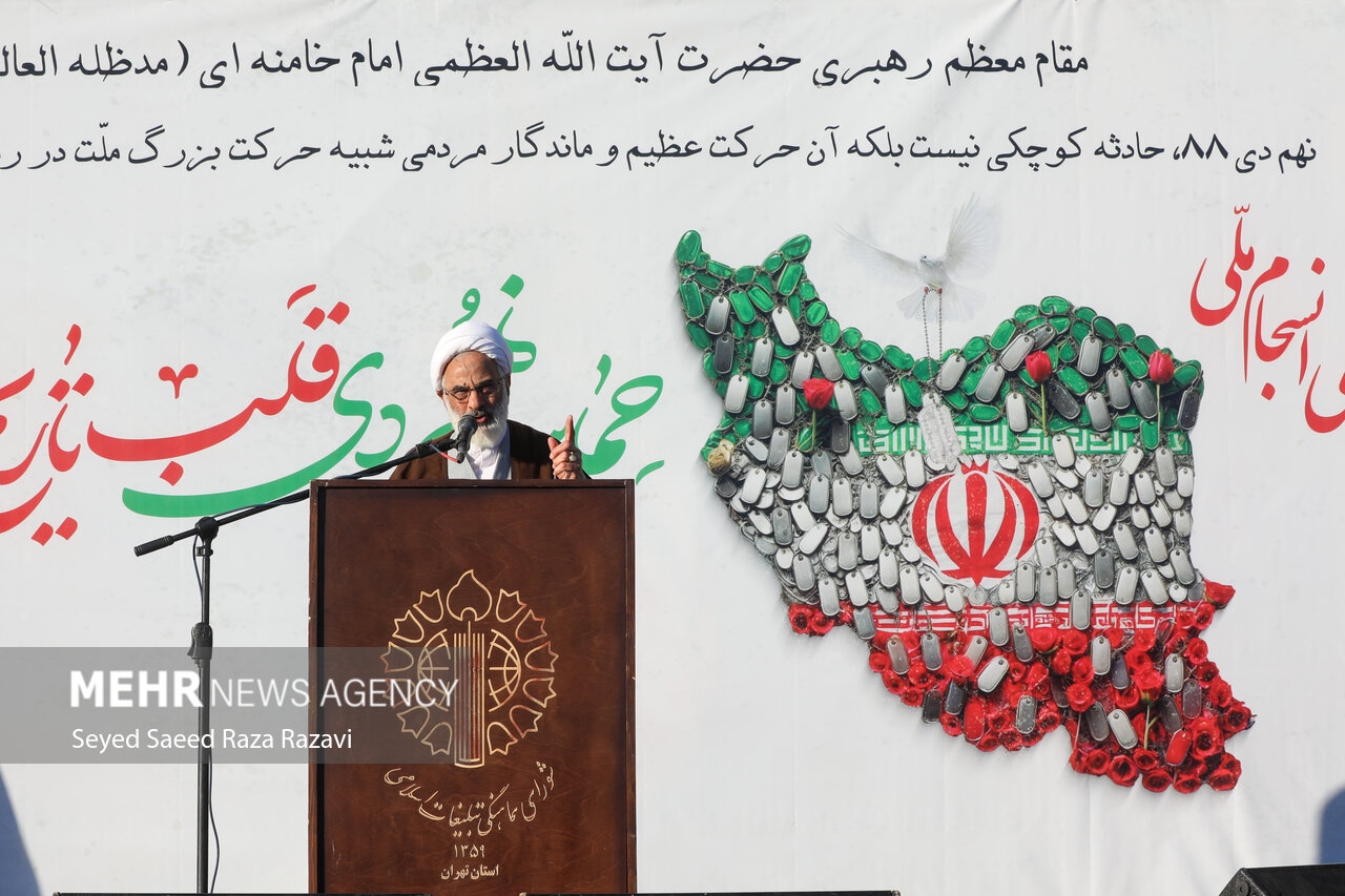 مراسم گرامیداشت سالروز حماسه «۹ دی» با حضور پر شور مردم و با سخنرانی حجت الاسلام والمسلمین حاجی صادقی نماینده ولی فقیه در سپاه پاسداران انقلاب اسلامی بعدازظهر امروز سه شنبه ۹ دی ماه ۱۴۰۴ در میدان آئینی امام حسین (علیه السلام) تهران برگزار شد.