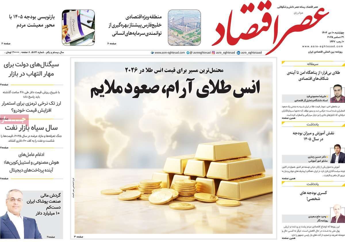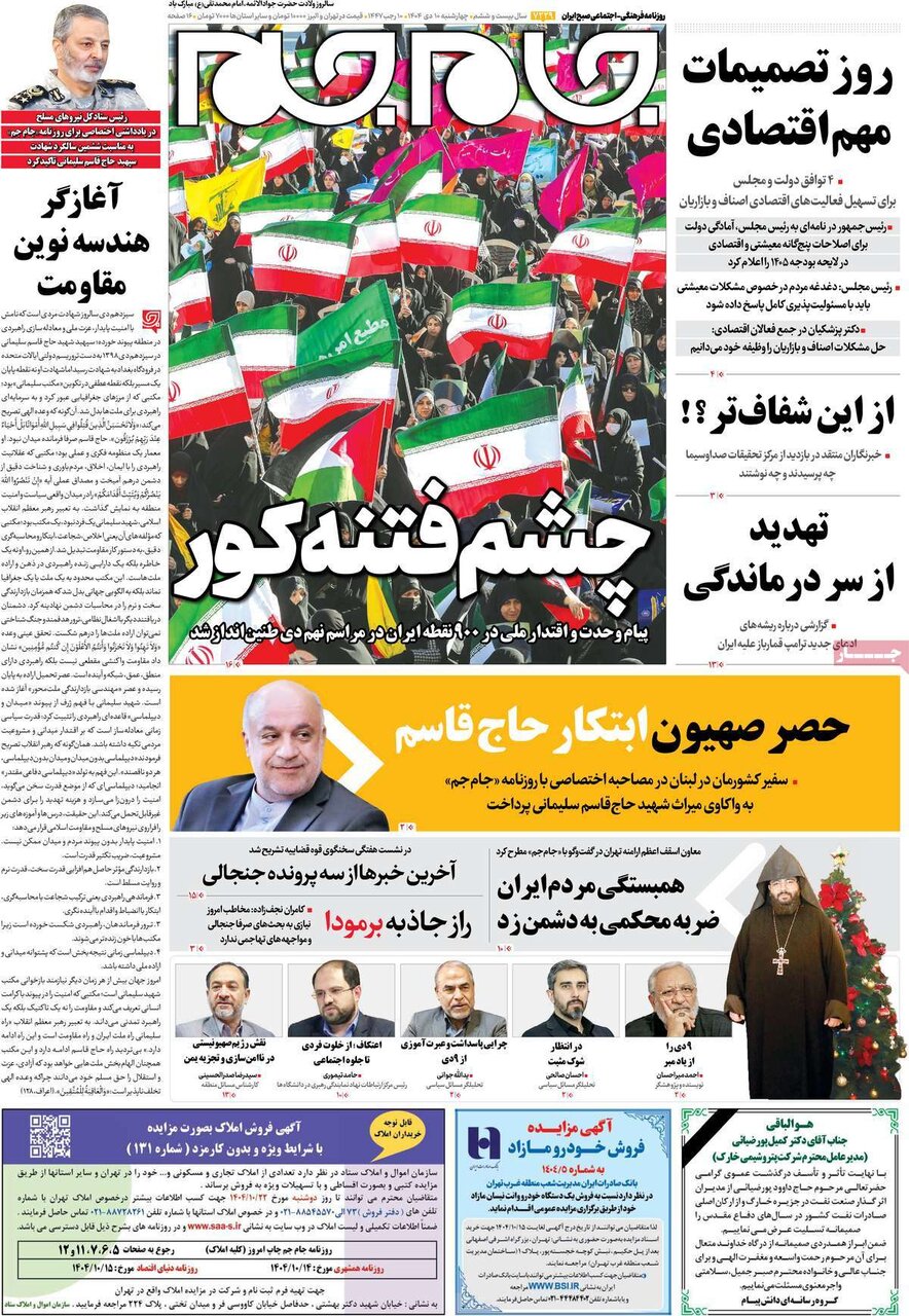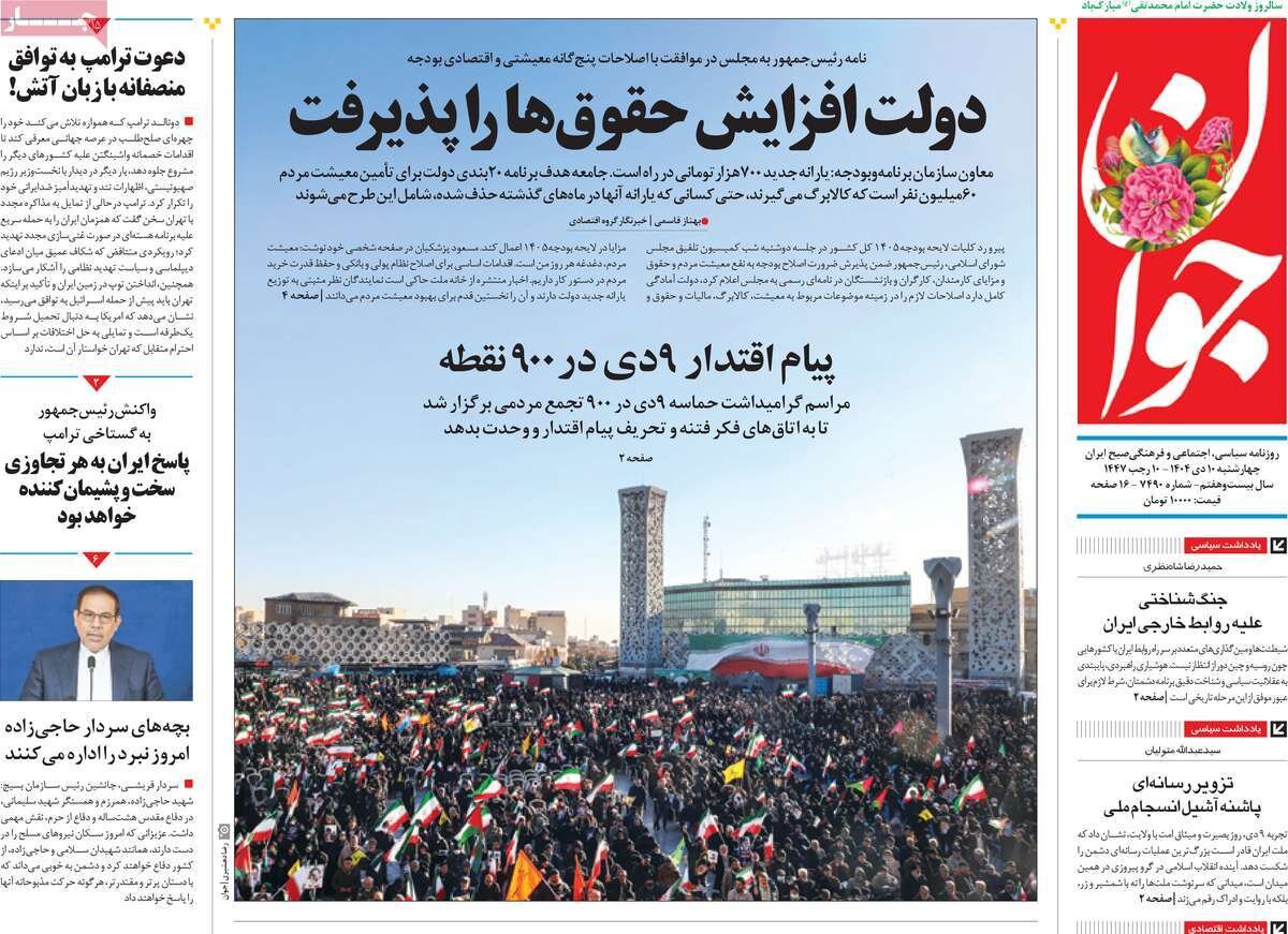 دبدار رئیس جمهور با اصناف معترض،توافق مجلس و دولت بر سر مالیات و حقوق و تعطیلی استانهای متعدد به خاطر سرما و... از تیترهای مطبوعات امروز است.