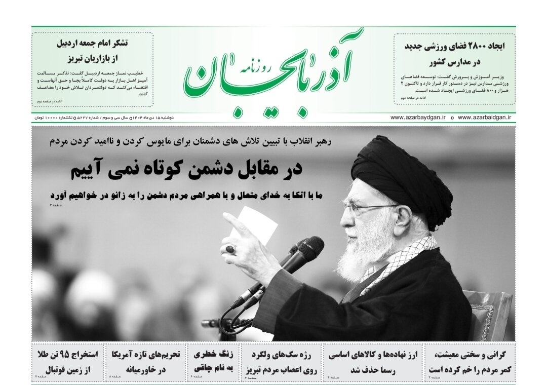 صفحه نخست روزنامه‌های آذربایجان شرقی ۱۵ دی ۱۴۰۴