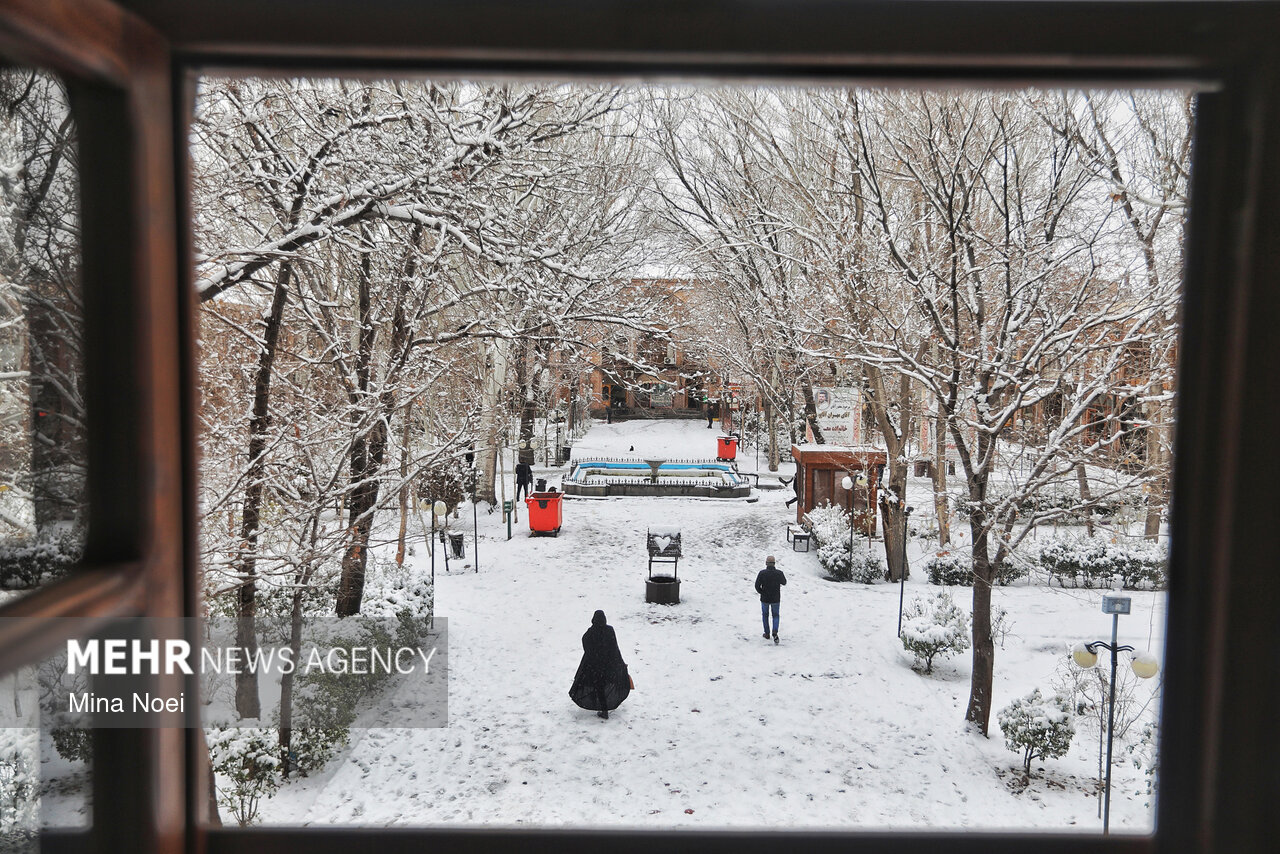 بارش گسترده برف که از دیروز در ارتفاعات اطراف تبریز آغاز شده بود، صبح امروز با غلظت بیشتری به شهر نفوذ کرده و چهرهای زمستانی و باشکوه به آن بخشیده است.