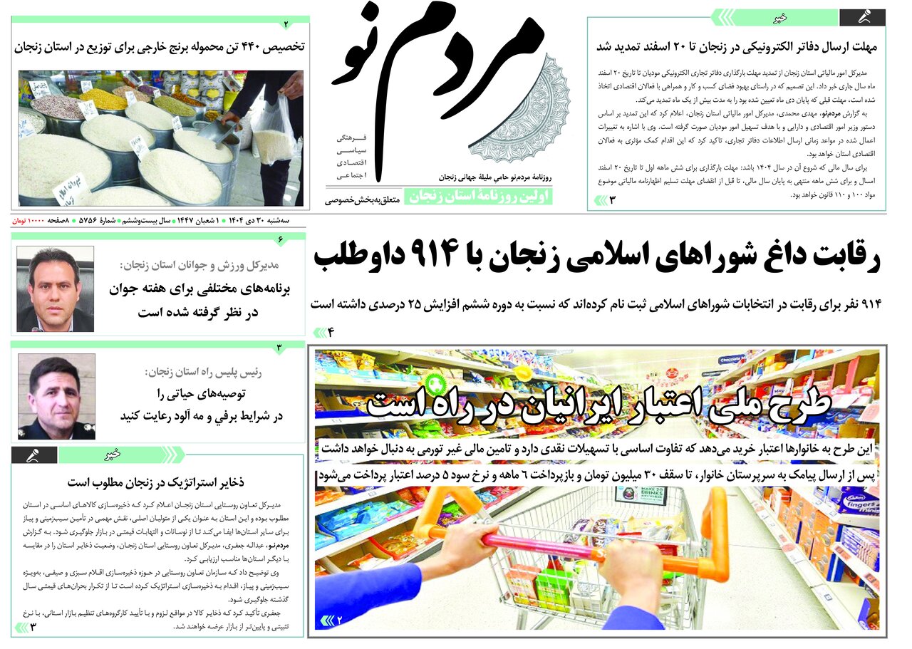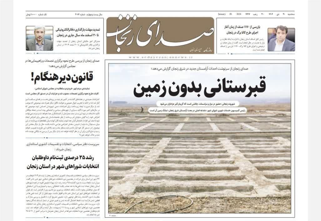 صفحه اول روزنامه های زنجان ۳۰ دی ۱۴۰۴