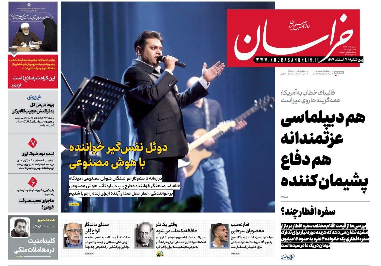 صفحه اول روزنامه های خراسان رضوی ۷ اسفند ۱۴۰۴