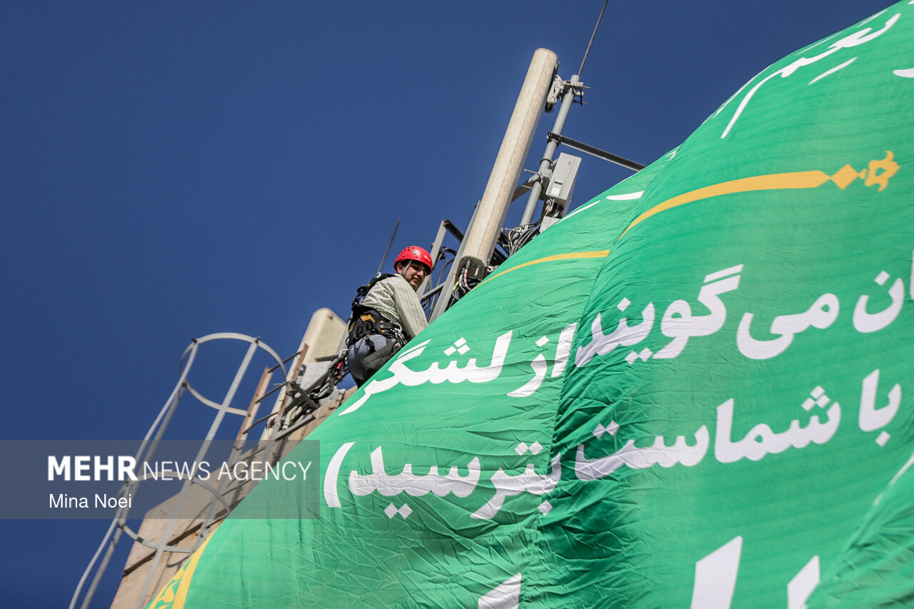 همزمان با گسترش فعالیتهای فرهنگی- قرآنی در آذربایجان شرقی، اَبَرپرچم «زندگی با آیهها» امروز پنجشنبه ۷ اسفند با حضورمدیرکل اداره تبلیغات اسلامی استان آذربایجان شرقی و جمعی از مسئولان و فعالان فرهنگی در تبریز به اهتزاز درآمد.