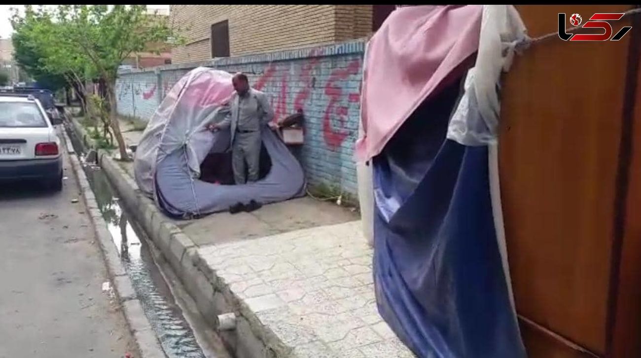 این مستاجر بخت برگشته از شب گذشته در پیاده رو کوچه معلم نسیم شهر ساکن شده است که امید میرود خیرین و مسئولان به مدد این خانواده بشتابند.